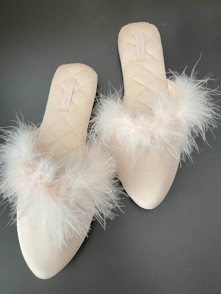 أحذية نسائية للخريف/الشتاء ذات أصبع مدبب مزينة بفرو اصطناعي سهلة الارتداء