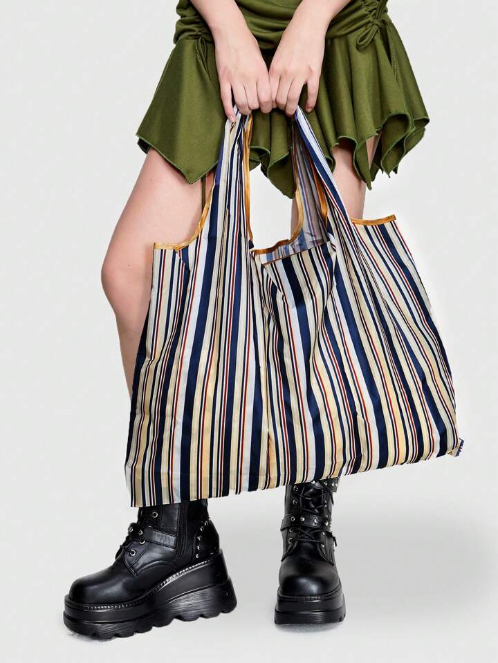 حقيبة تخزين موضة خطوط بسعة كبيرة محمولة وقابلة للطي بمقابض