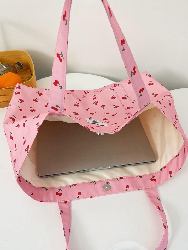 حقيبة كتف قابلة للحمل من الفراولة الوردية لحمراء مناسبة للفتيات والنساء لطلاب الكلية والعاملين بالمكاتب ومثالية للعمل والمدرسة والجامعة والعطلات، حقيبة جذابة ومميزة بعناصر الكرز الكاواي