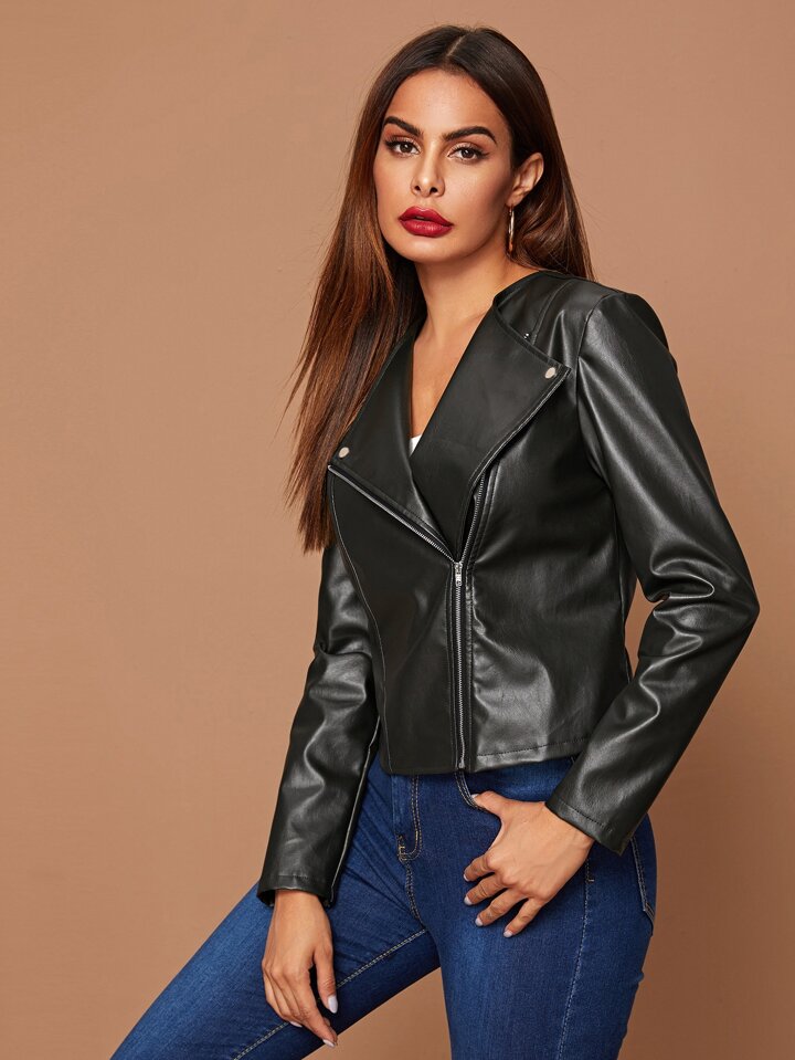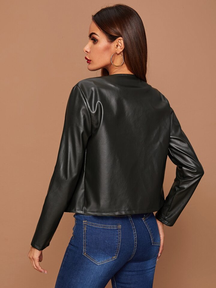 جاكيت بيكر من الجلد الصناعي وبسستة