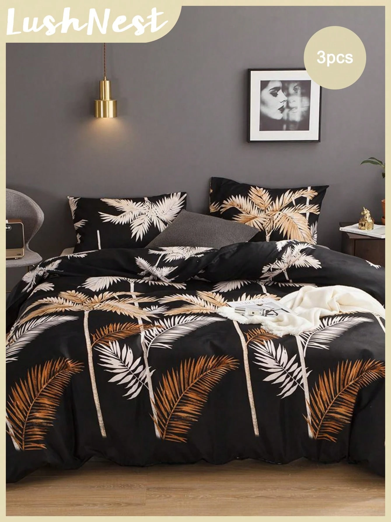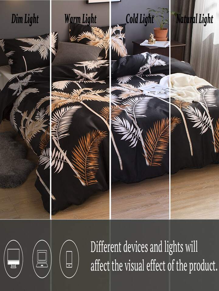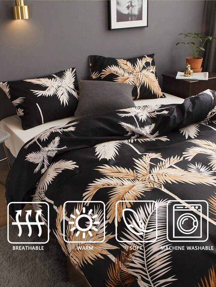 طقم أغطية سرير مزخرف بأوراق النخيل، طقم أغطية سرير مزرعة بمقاس كوين كينج، 3 قطع، غطاء لحاف فائق النعومة من الألياف الدقيقة القابلة للتنفس، 1 غطاء لحاف بسحاب، 2 كيس وسادة، هدايا للنساء والرجال