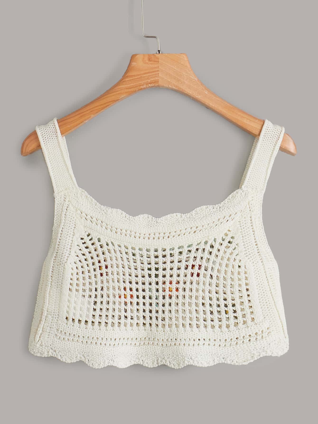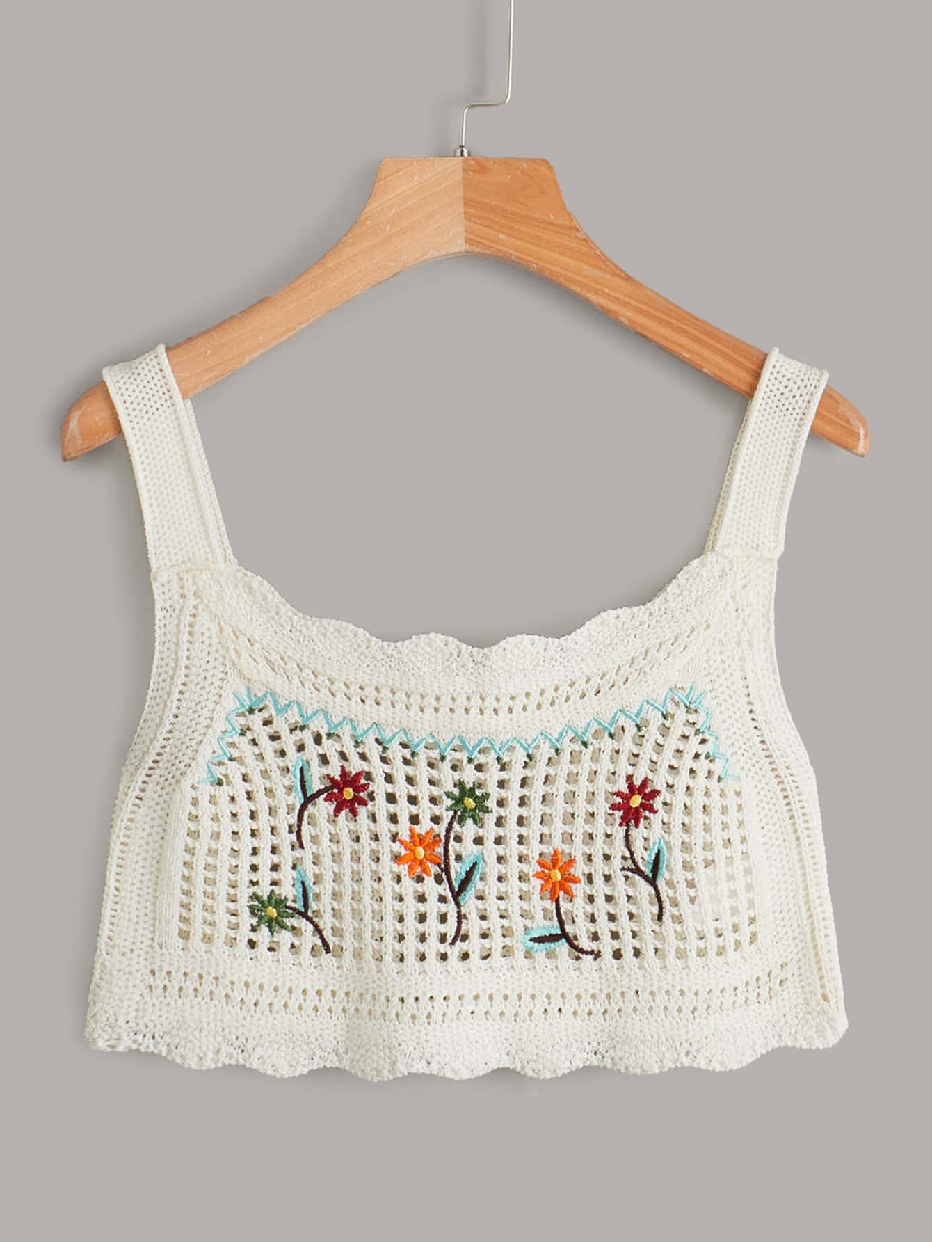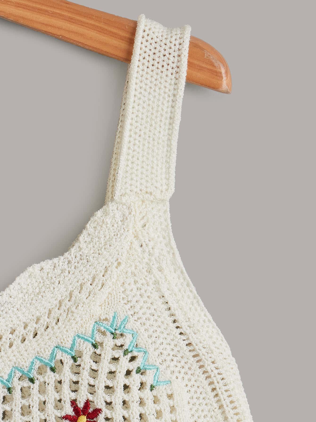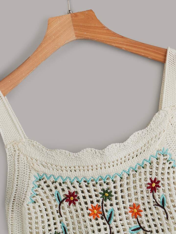 لباس علوي محبوك مطرز بأزهار قص مجوف