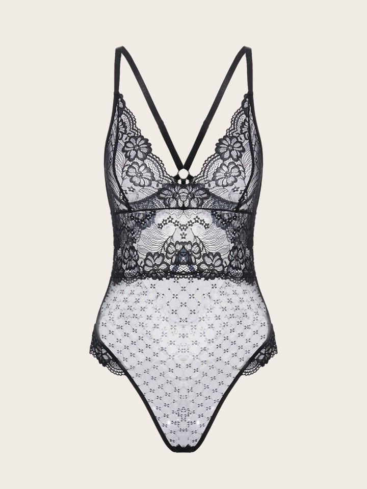 بدسويت تيدي دانتيل زهري الحلقة مرتبطة قص مجوف