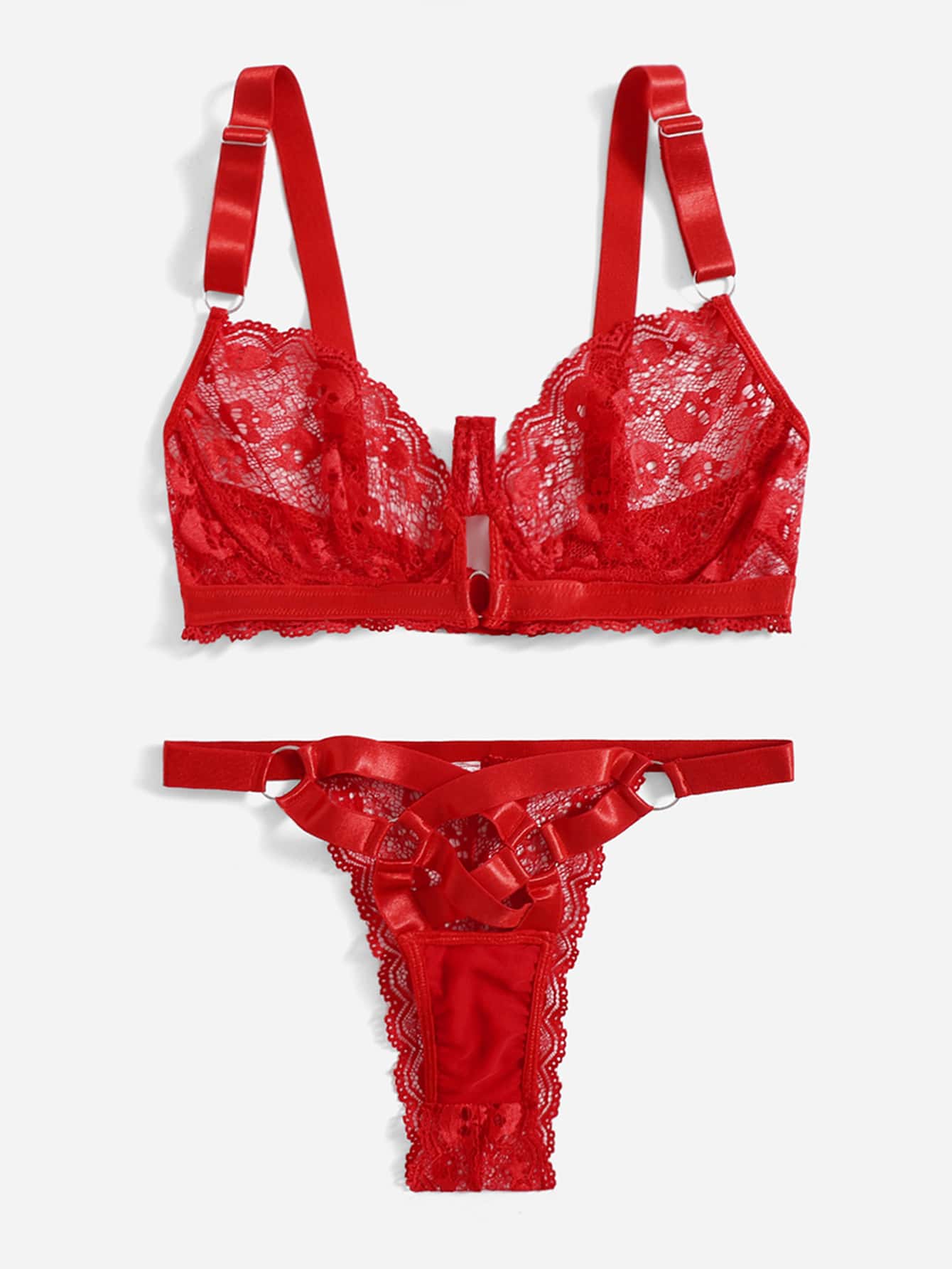 طقم ملابس داخلية دانتيل زهري الحلقة مرتبطة حلقة معدني