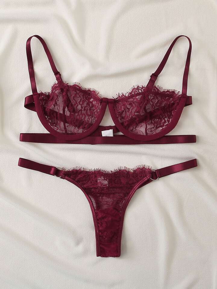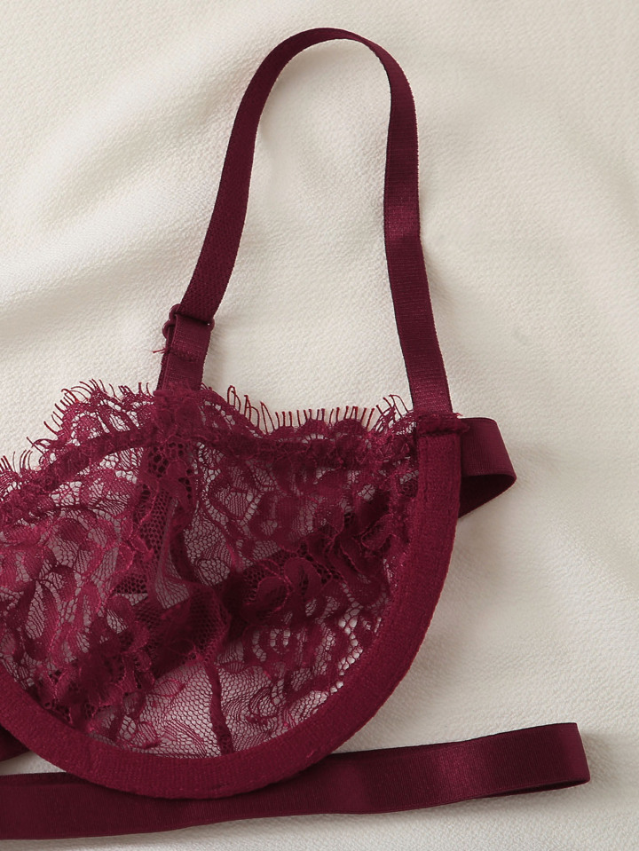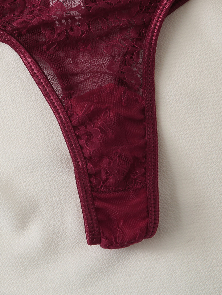 مجموعة ملابس داخلية جذابة ذات وسادة سلكية وسروال مع تفاصيل زهرية من الدانتيل