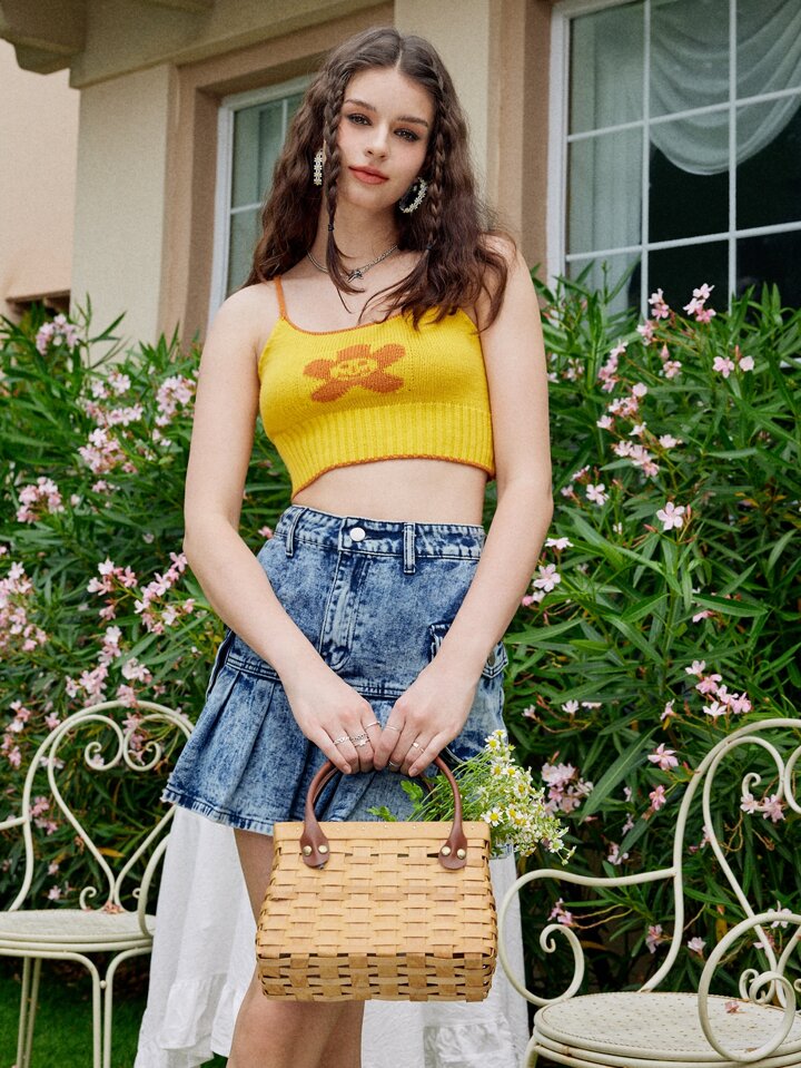 لباس علوي محبوك قصير نمط زهري