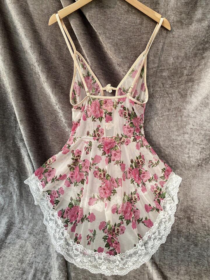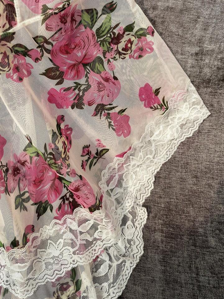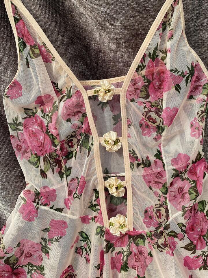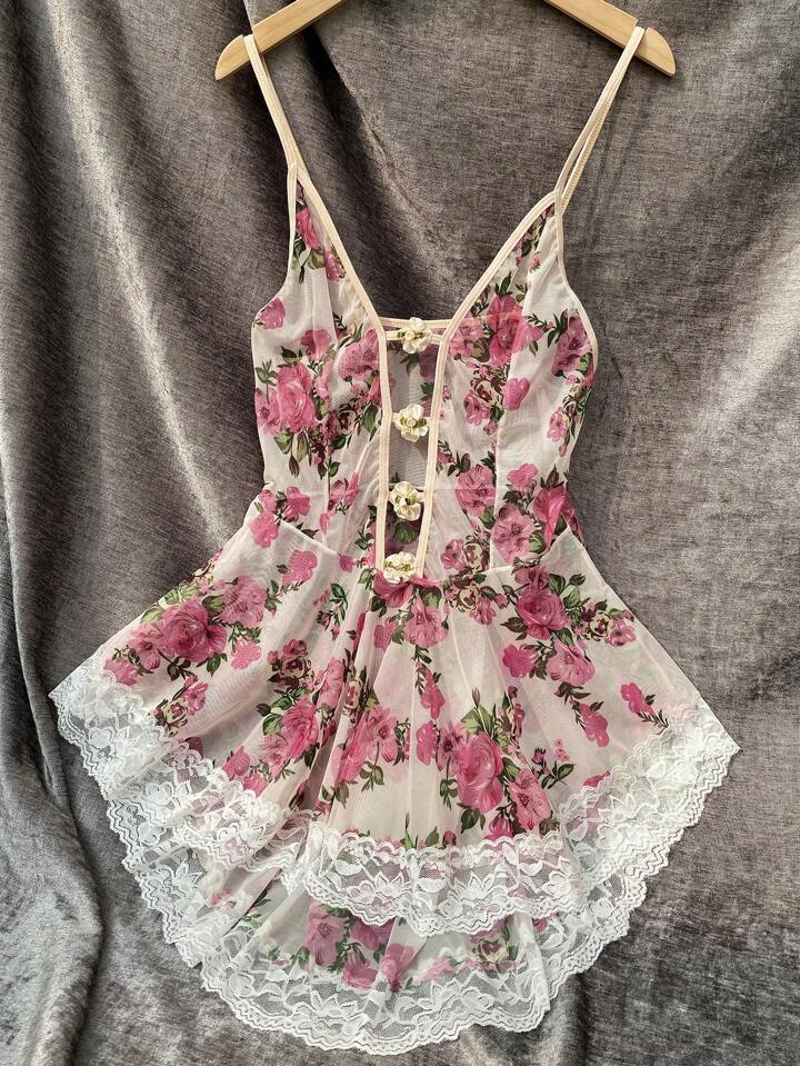 فستان نوم بتصميم زهري مطبوع مع تباين مع دانتيل وشبكة زهرة عالية منخفضة