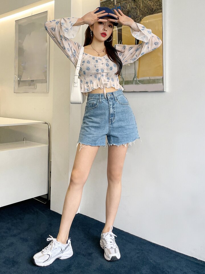 ملابس علوية قصيرة بأكمام منفوشة مزينة بطبعات زهرية، ملابس نسائية للمناسبات والخريف، بأكمام طويلة