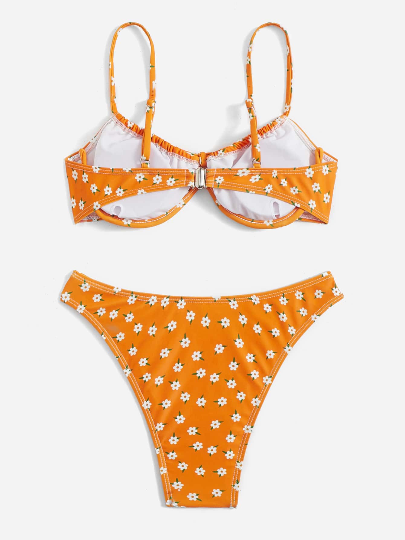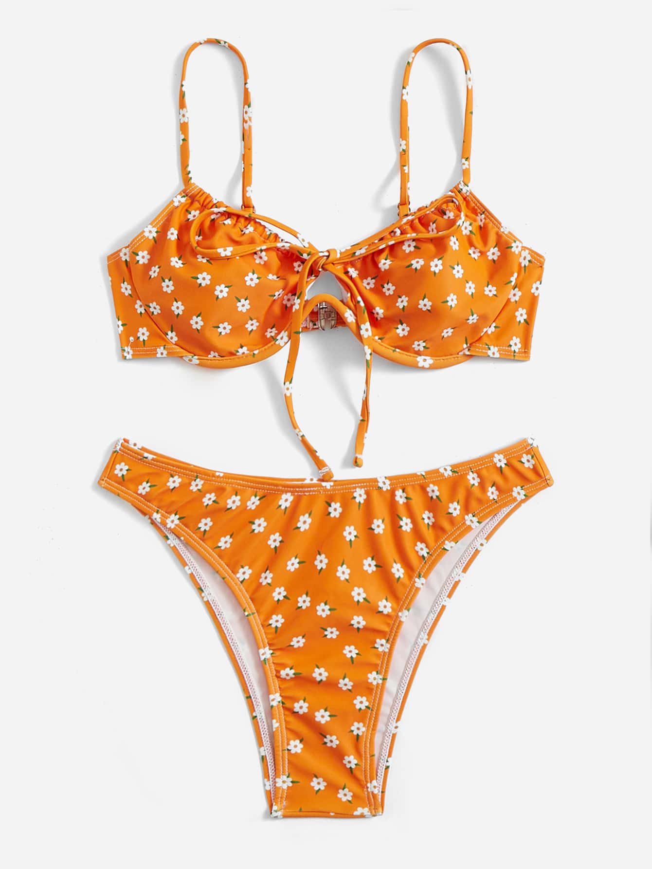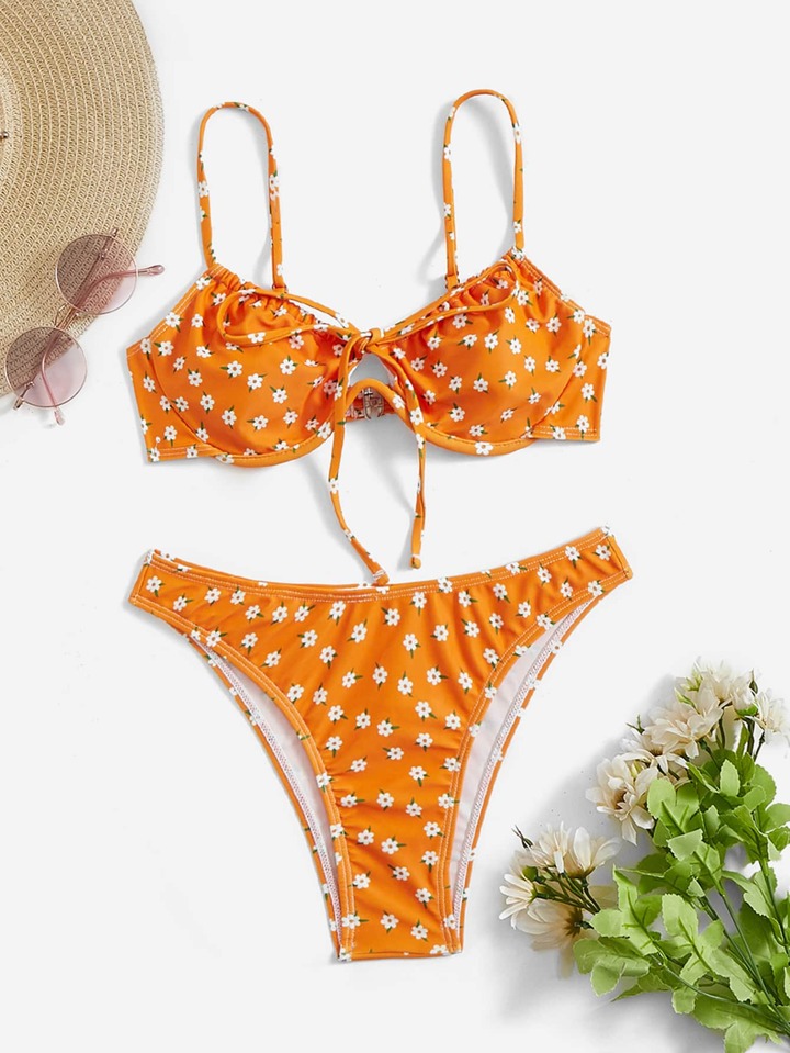 بيكيني مربوط بأسلاك بتصميم زهري مطبوع بشكل عقدة V