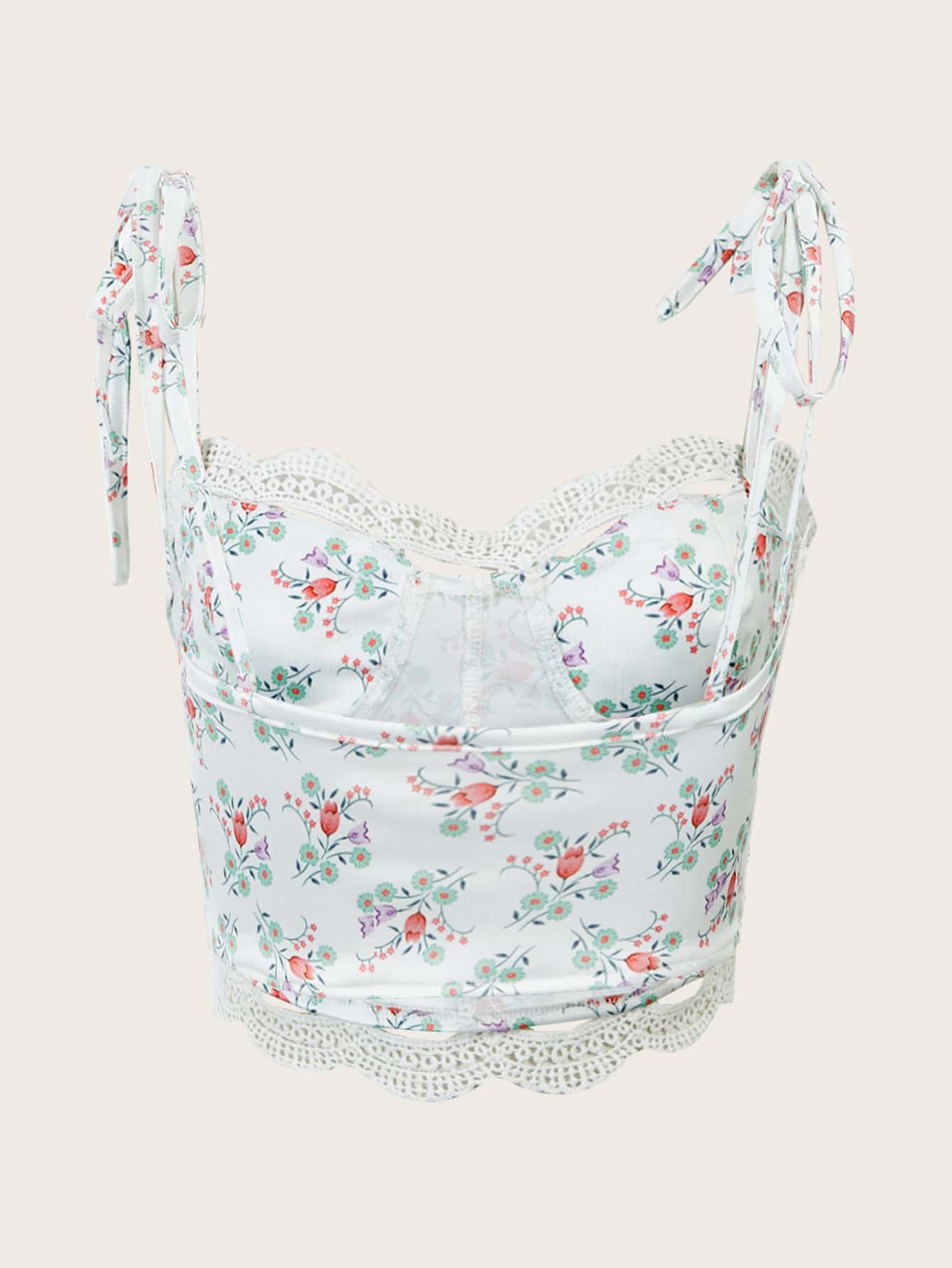 لباس علوي كامي طباعة الأزهار مقلم دانتيل
