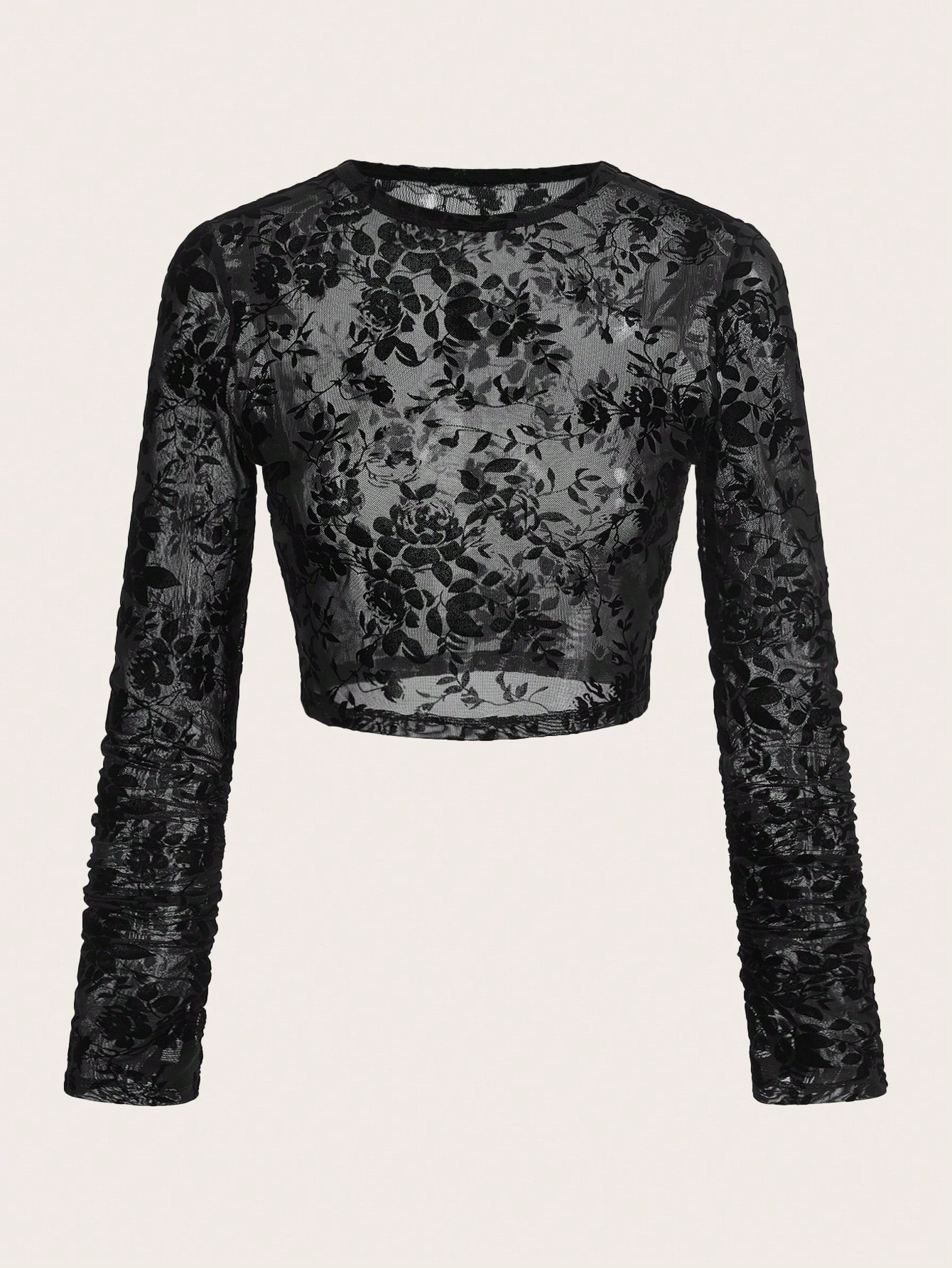 لباس علوي طباعة الأزهار شبكة بدون حمالة صدر