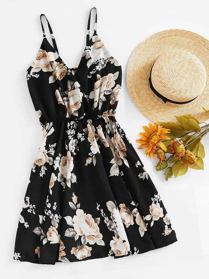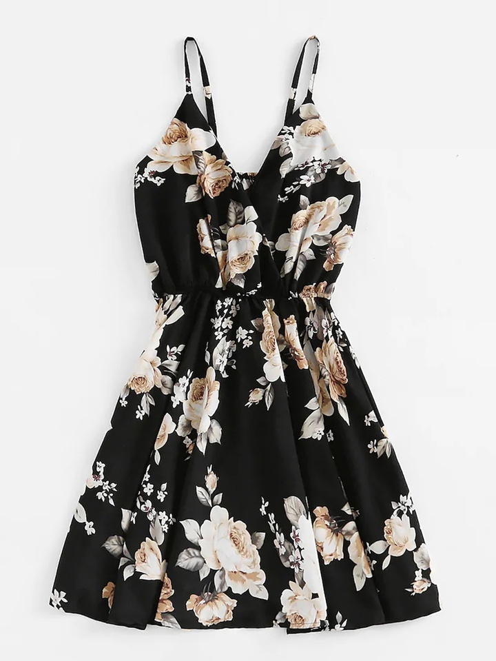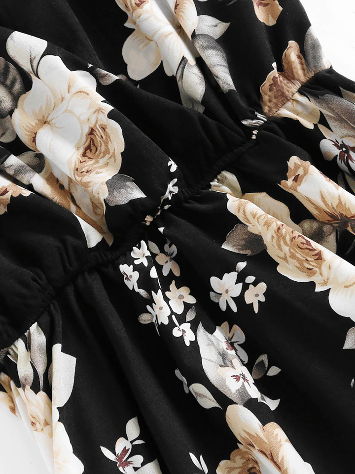 فستان كامي ملفوف عشوائي مع طياعة الأزهار