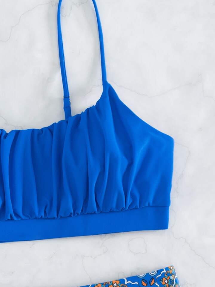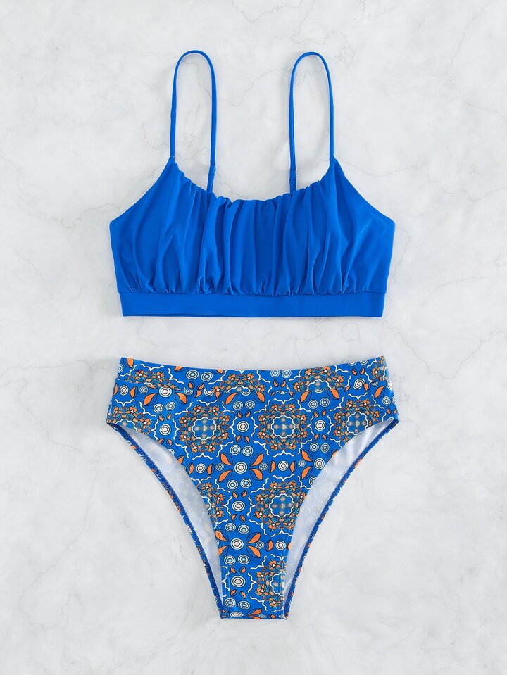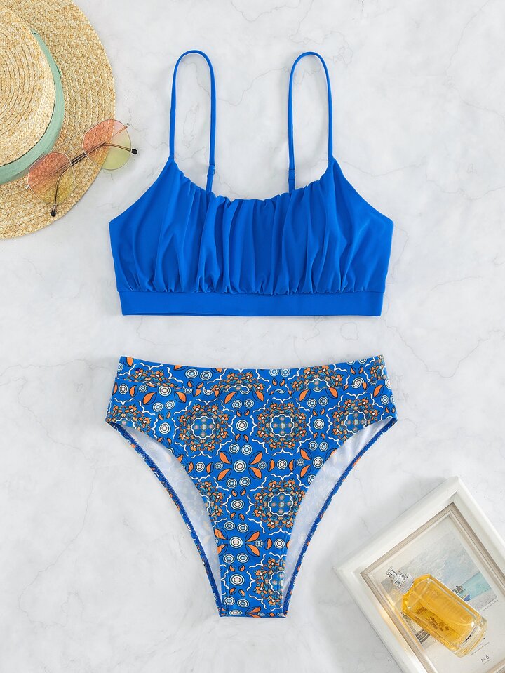 مجموعة بكيني صيفية للشاطئ بخصر عال وتصميم مطبوع بزهور مكشوف الصدر والبطن
