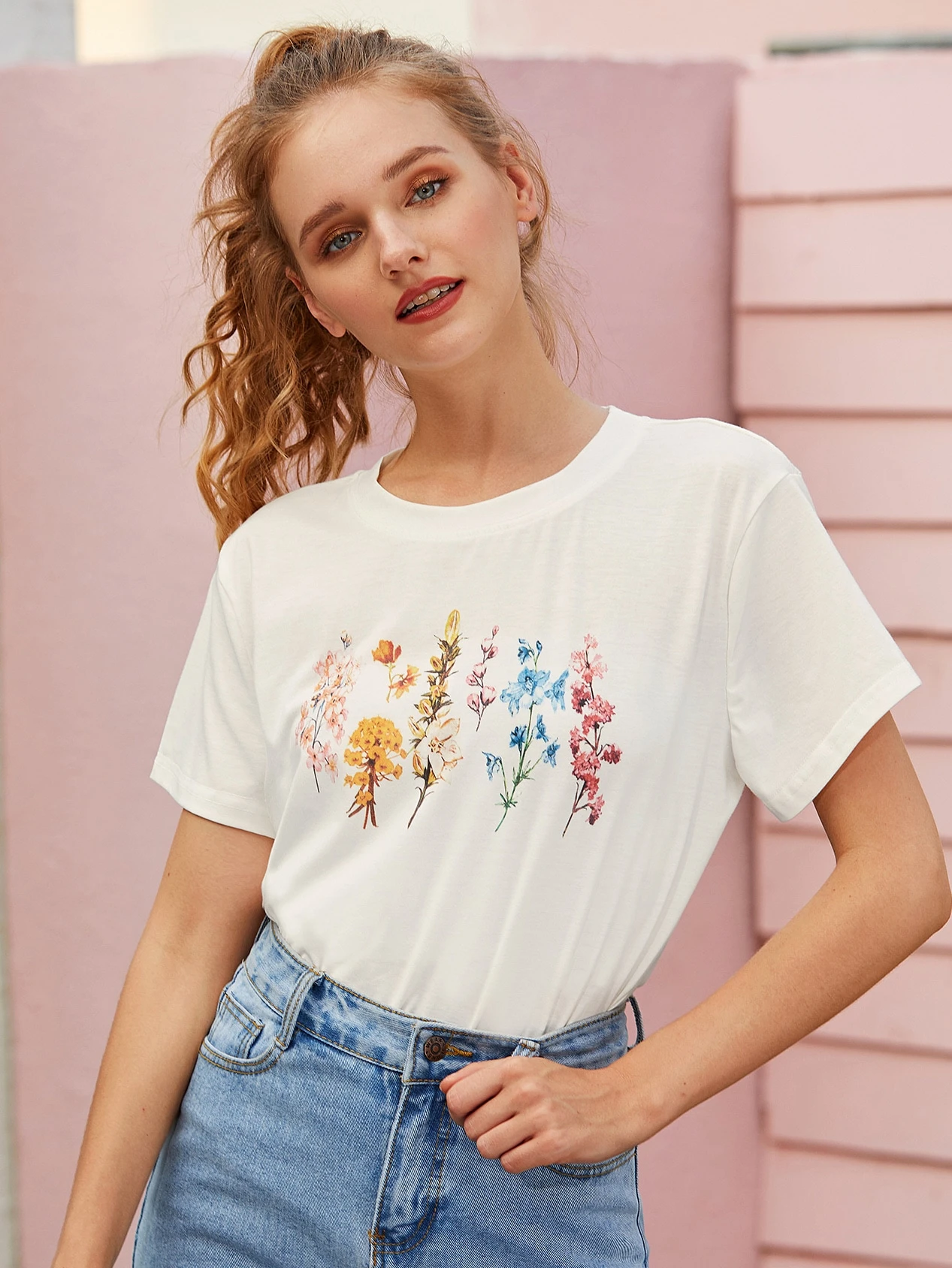 تي شيرت وأكمام قصيرة وبطباعة النبات