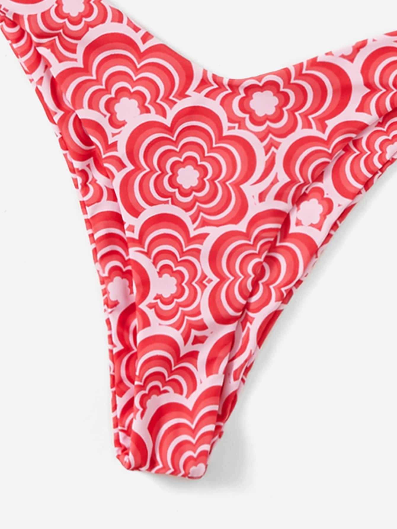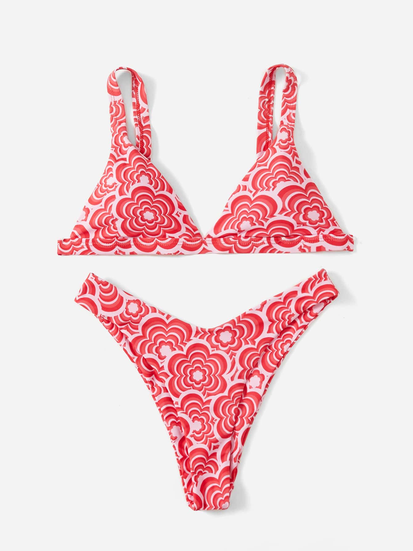 بيكيني مثلث بطبعة زهور ذو قصة عالية