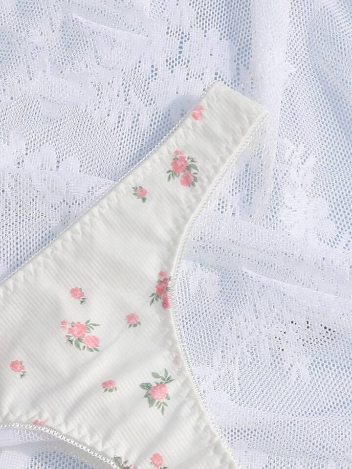 طقم لانجري للصدرية ذات الأسلاك والسروال مع طبعة الأزهار