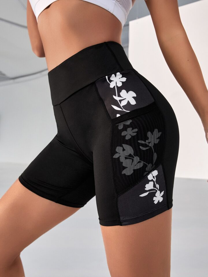 شورت رياضي طباعة الأزهار شريط خصر واسع مع جيب هاتف