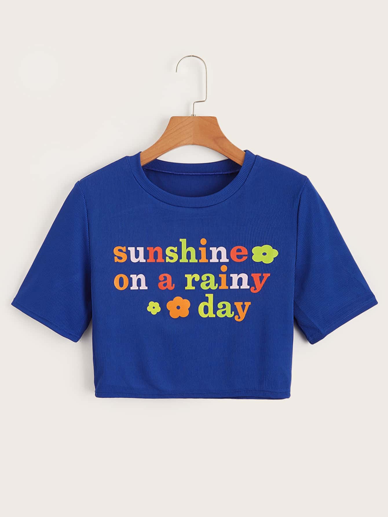 تي شيرت قصير بطباعة أزهار بطباعة شعار