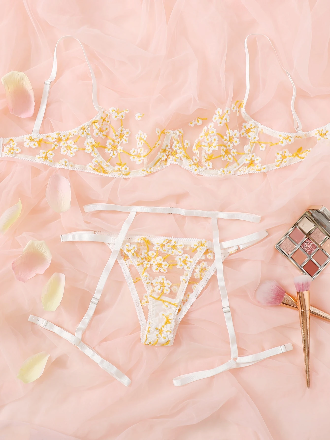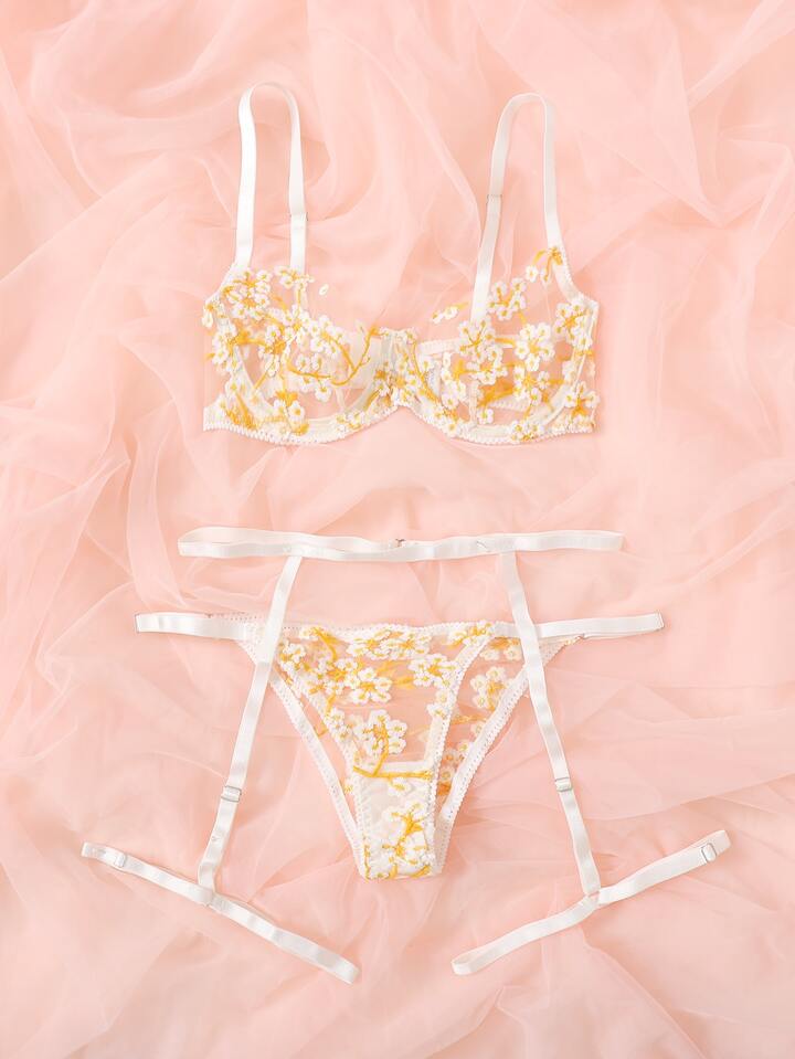 ملابس سكسي داخلية التطريز رسم الزهر رومانسي