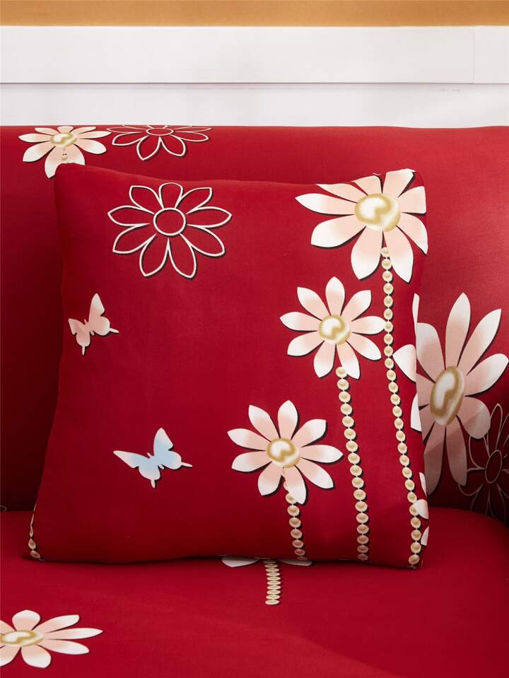 غطاء أريكة قابل للتمدد بطباعة زهور مع غطاء وسادة 1قطعة