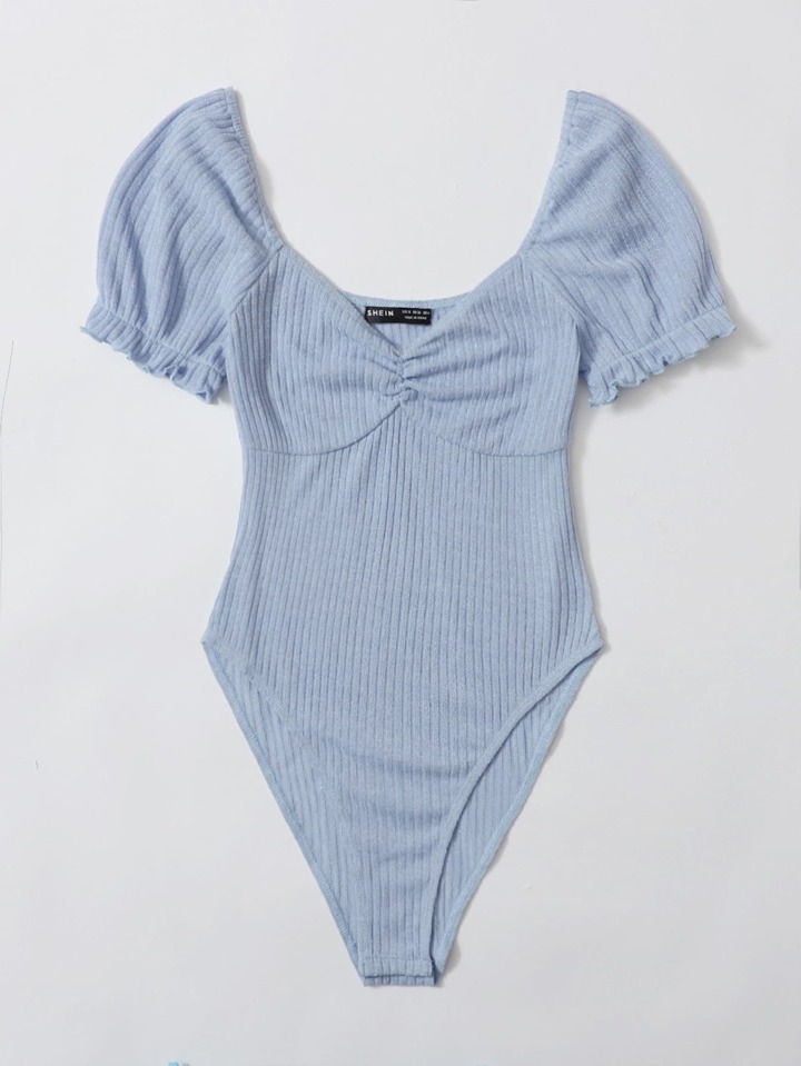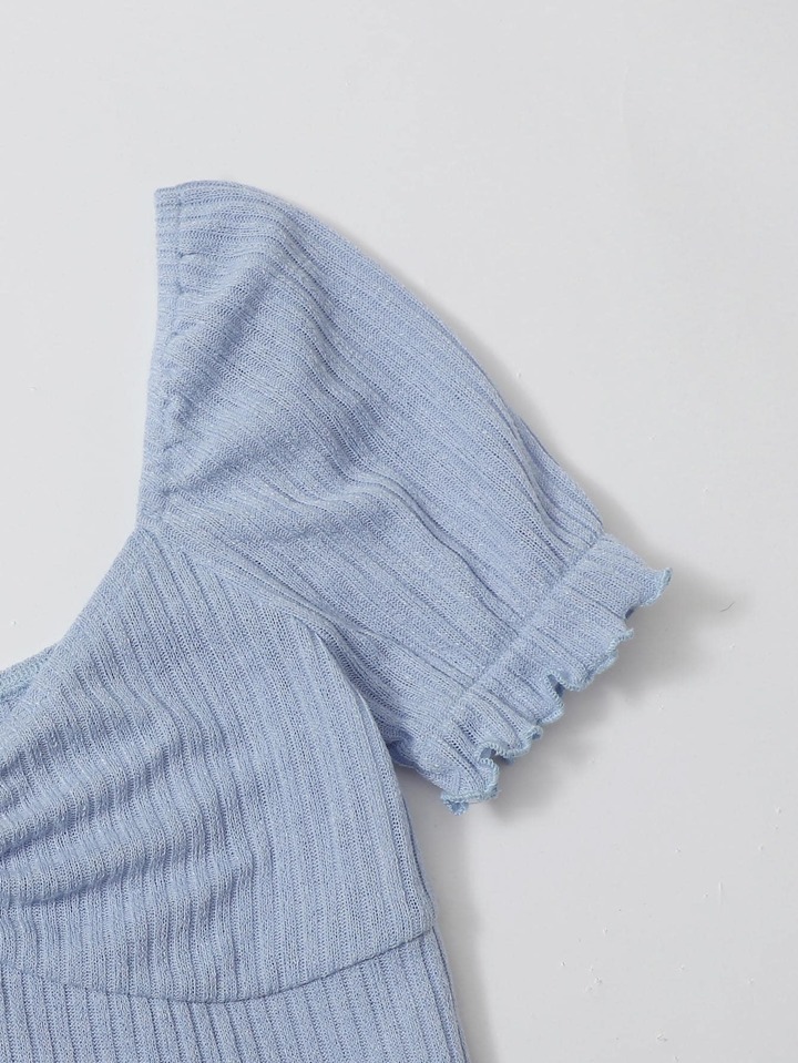 بدسويت محبوك ومضلع بطية صدر وباكمام منتفخة بهدب