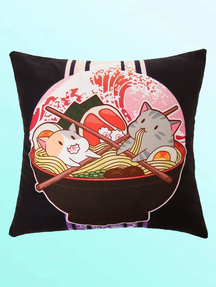 Fujiwara08 غطاء وسادة بدون حشوة طعام و بطباعة قط رسوم كارتون