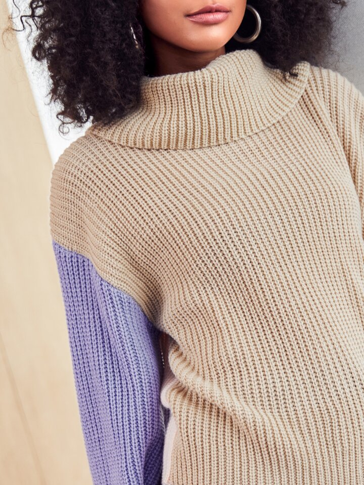سترات محبوك حاجز اللون كاجوال