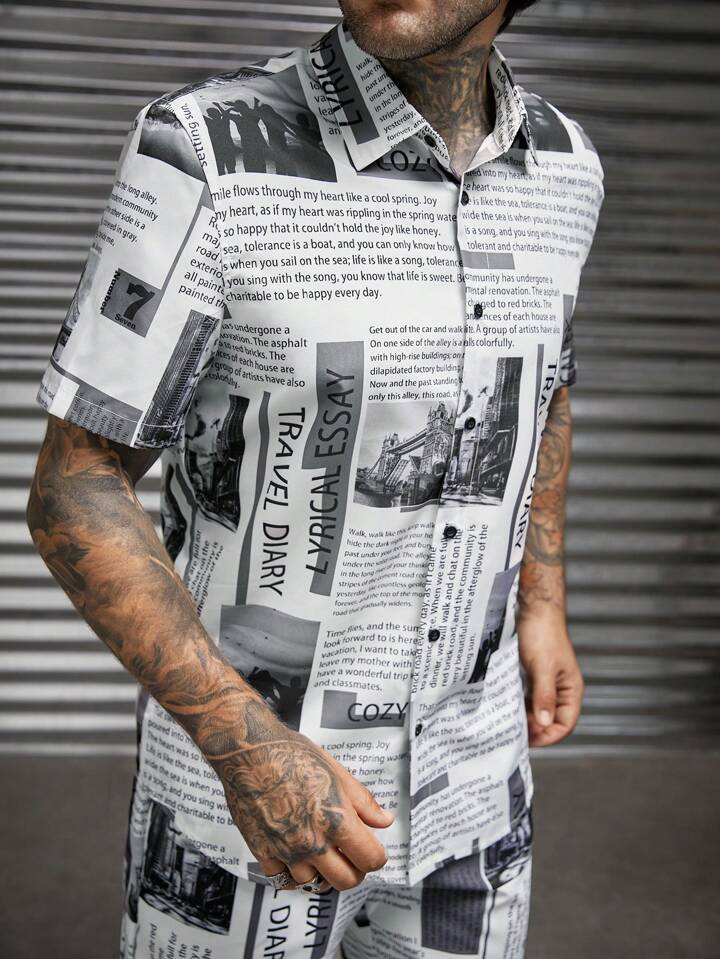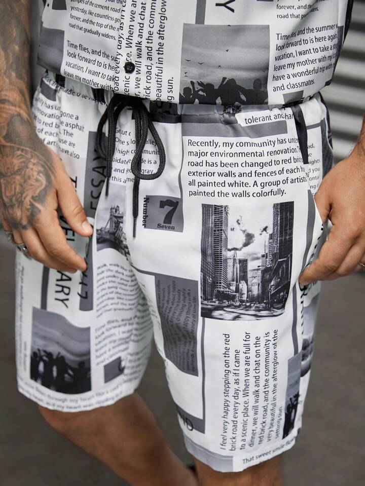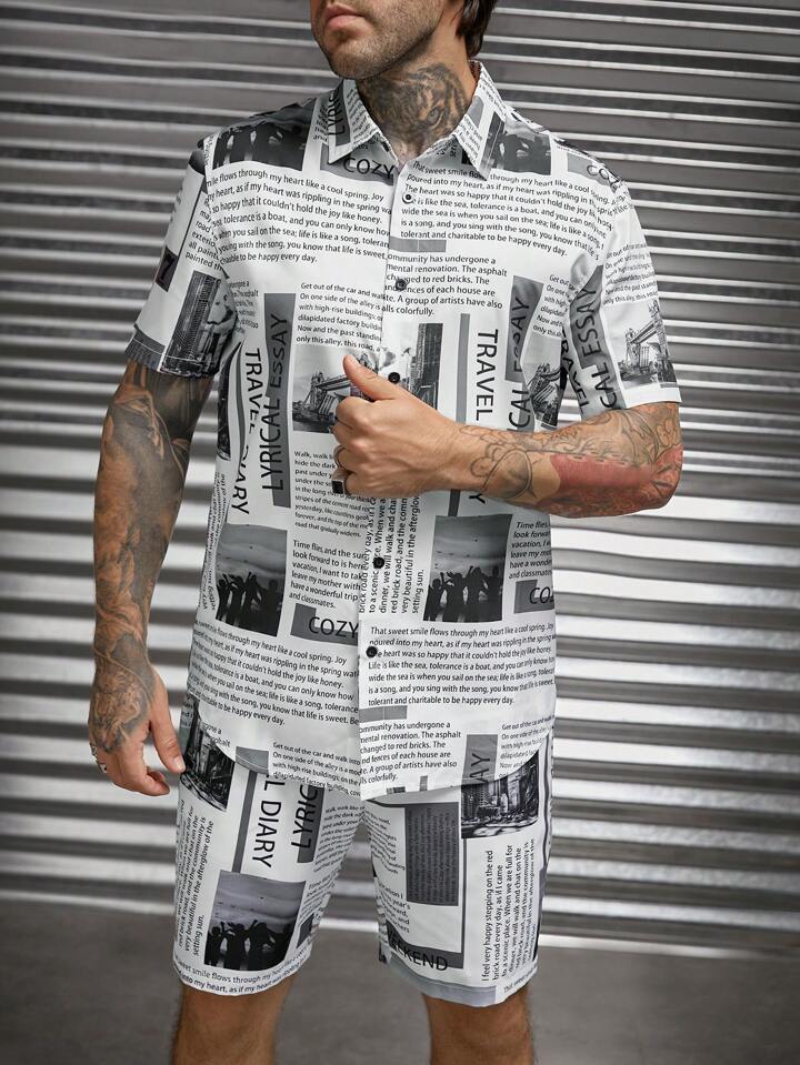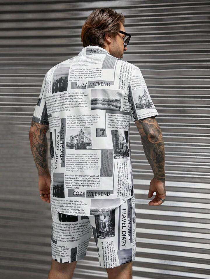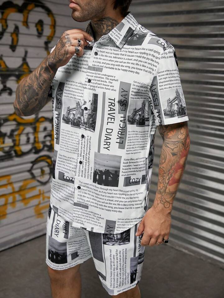 GENTILAND للرجال بطباعة جريدة قميص & بنطلون قصير