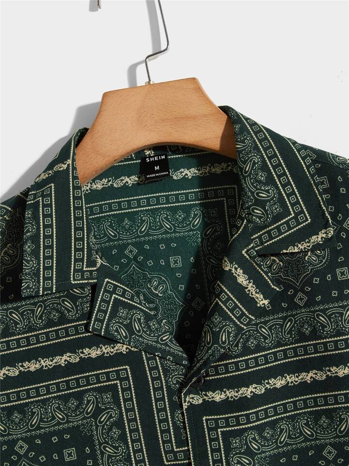 GENTILAND للرجال قميص طباعة بيزلي ياقة مطوي