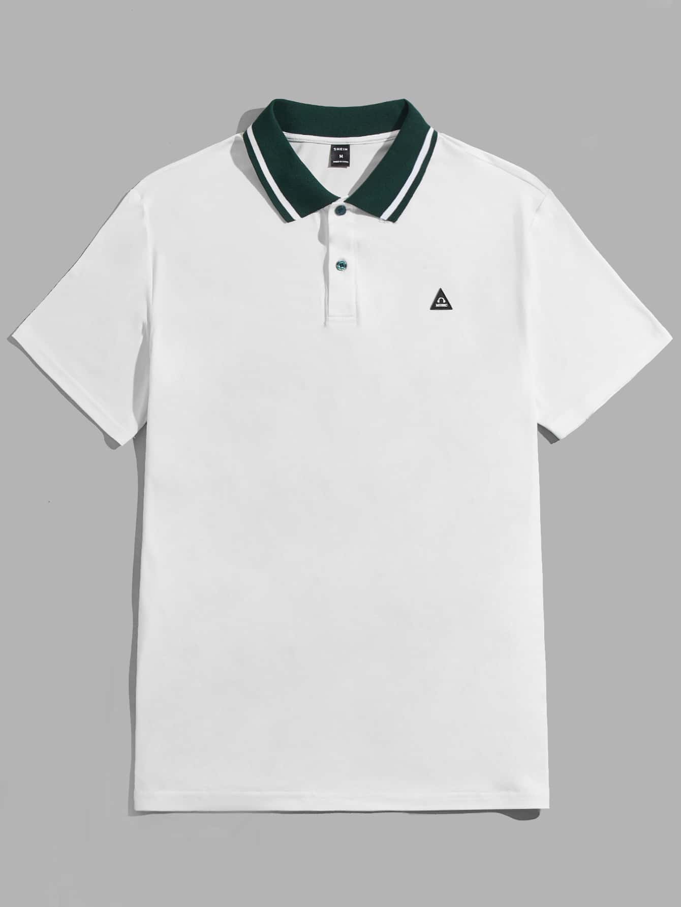 GENTILAND قميص بولو بتفاصيل مرقع مقلم مخطط للرجال
