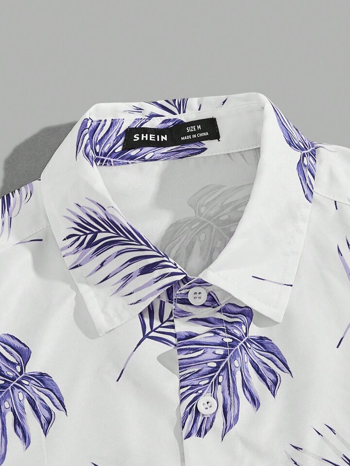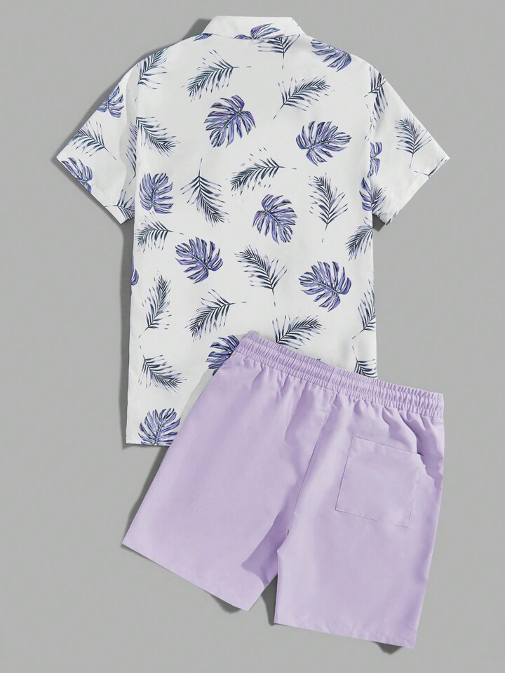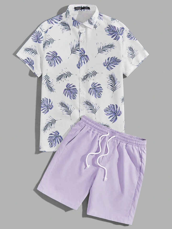GENTILAND للرجال بطباعة استوائية قميص & رباط خصر بنطلون قصير