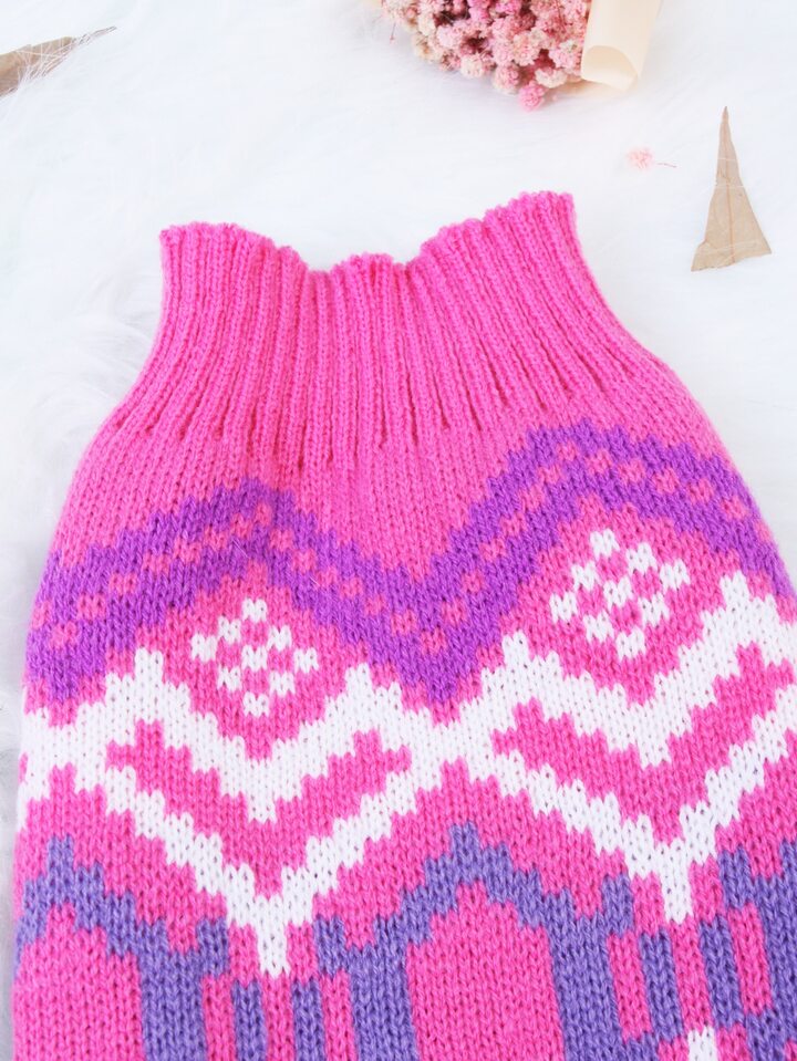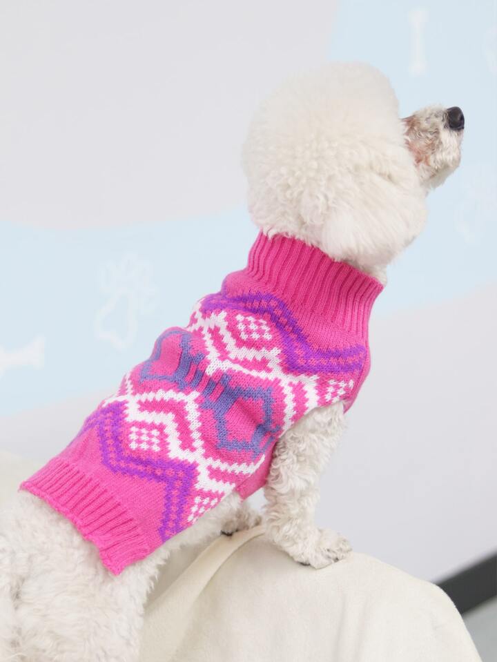 كنزة صوف حيوان اليف محبوك بنمط هندسي