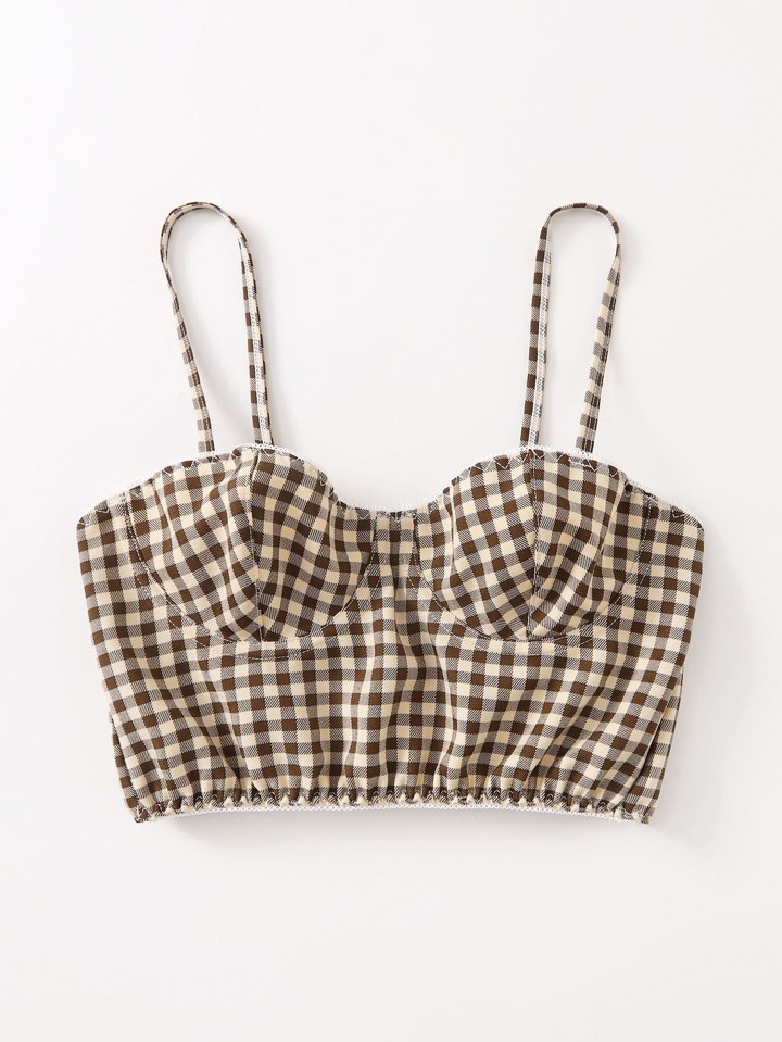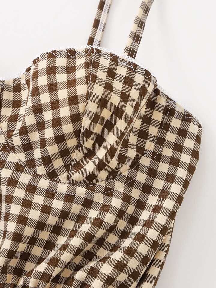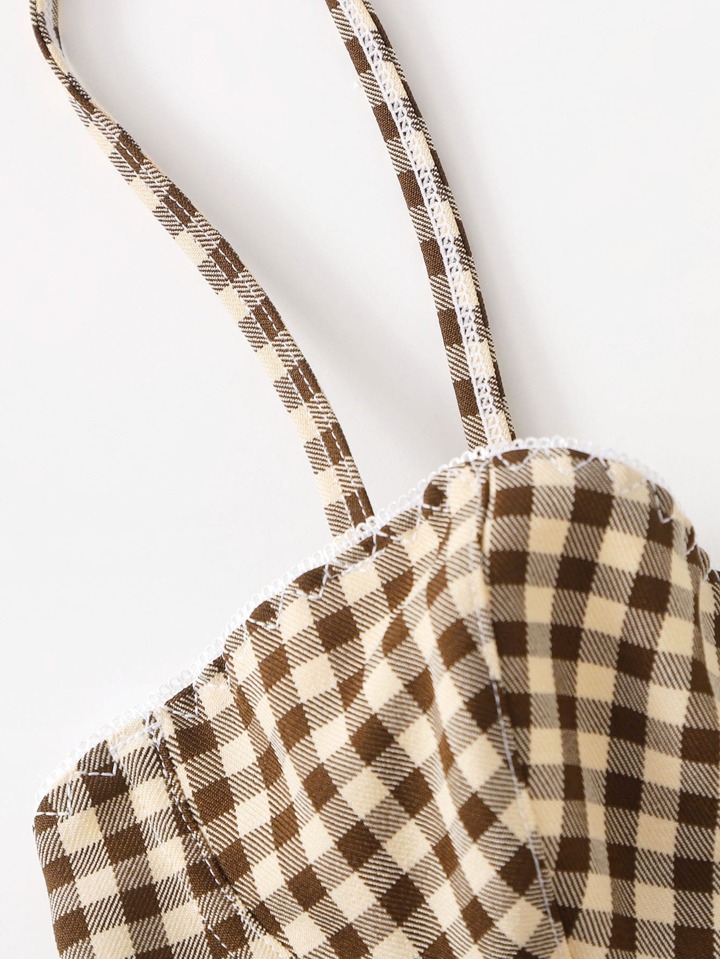 بلايز بحمالات قماش قطن المربعات كاجوال