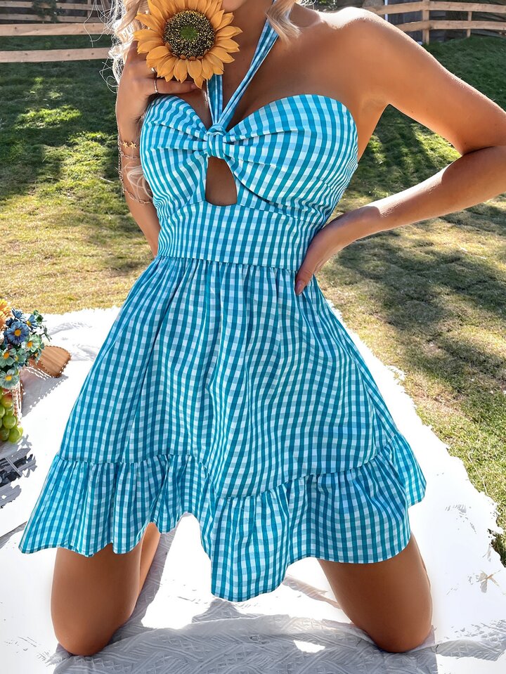 فستان برسن بطباعة قطني مقلم بغرز مكشوف الظهر بربطة حافة مكشكشة
