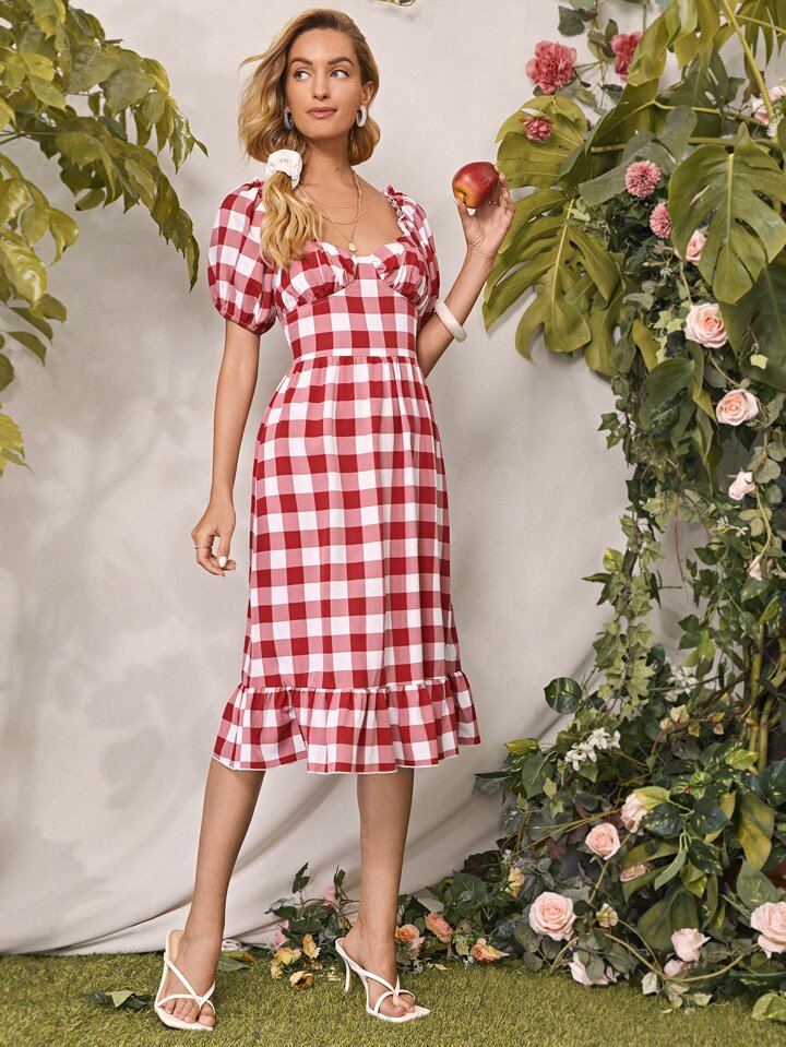 فستان بحافة مشكش قطني مقلم