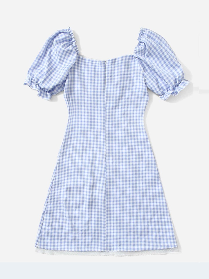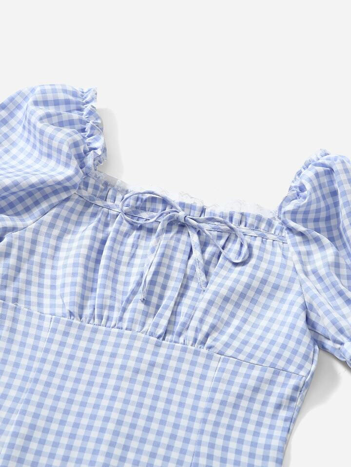 فستان بطباعة مربعات غنغهام ربطة امامية