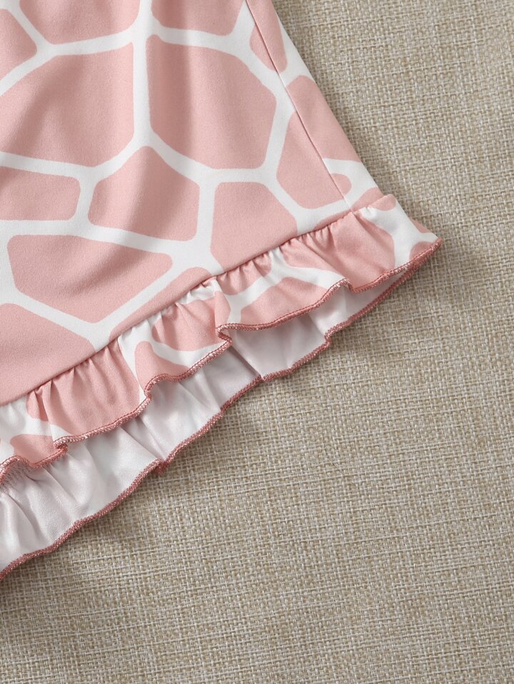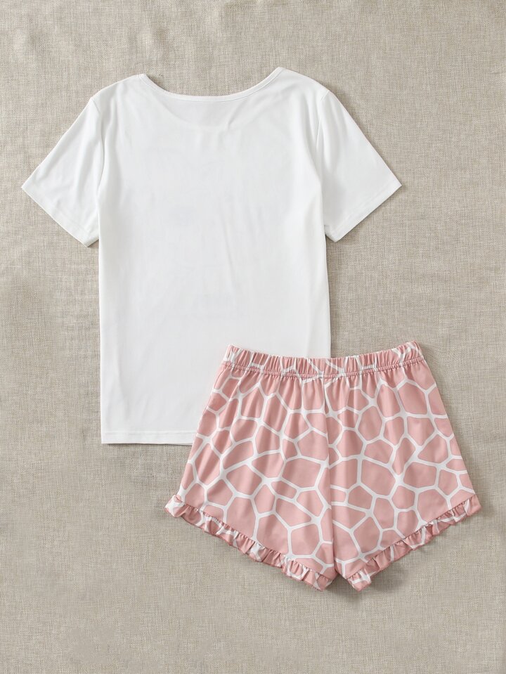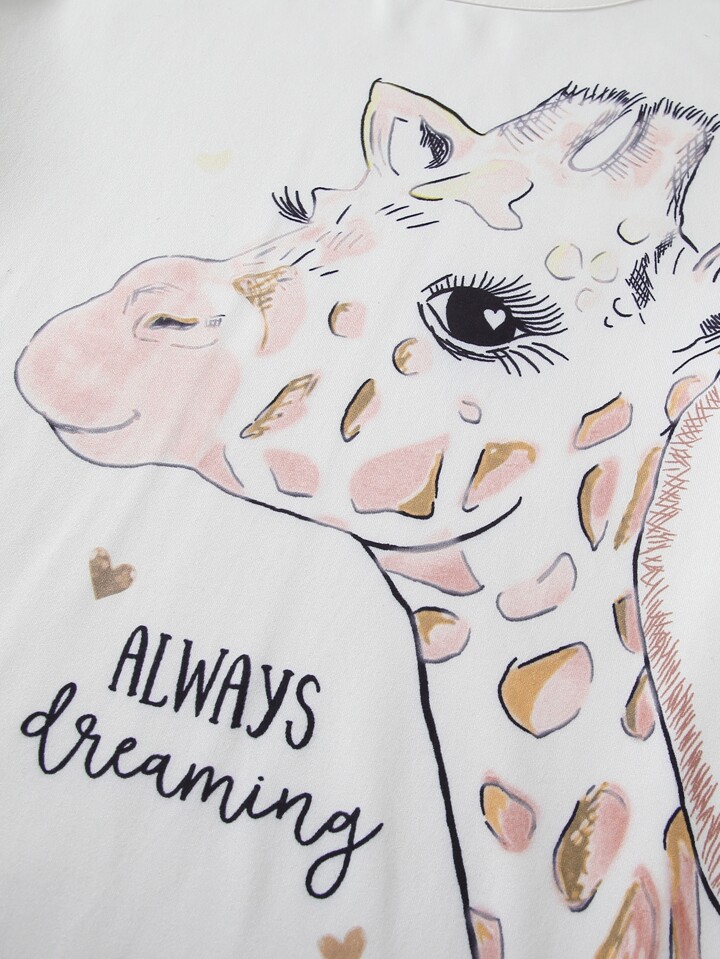 طقم بيجامة بطباعة زرافة وعبارة