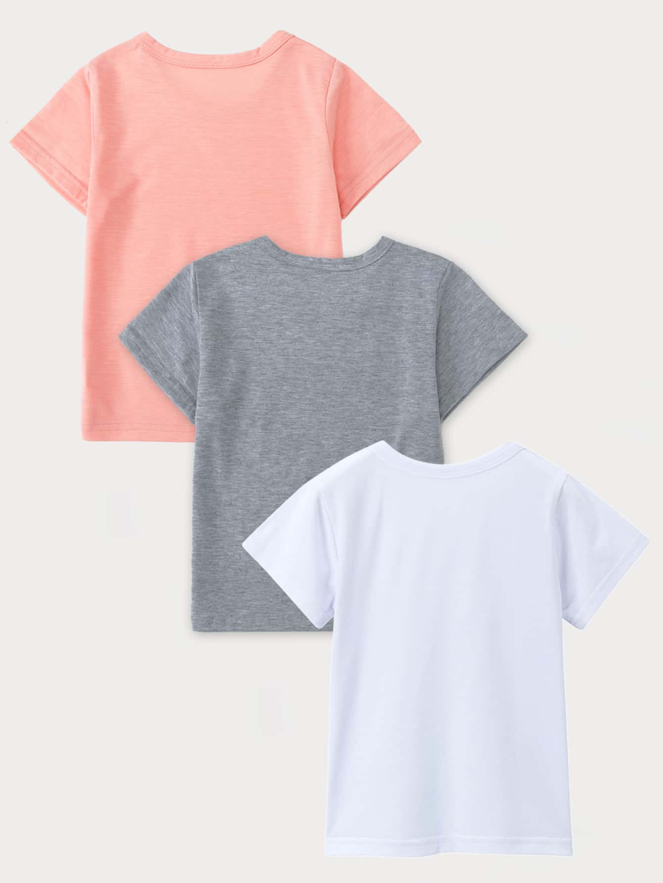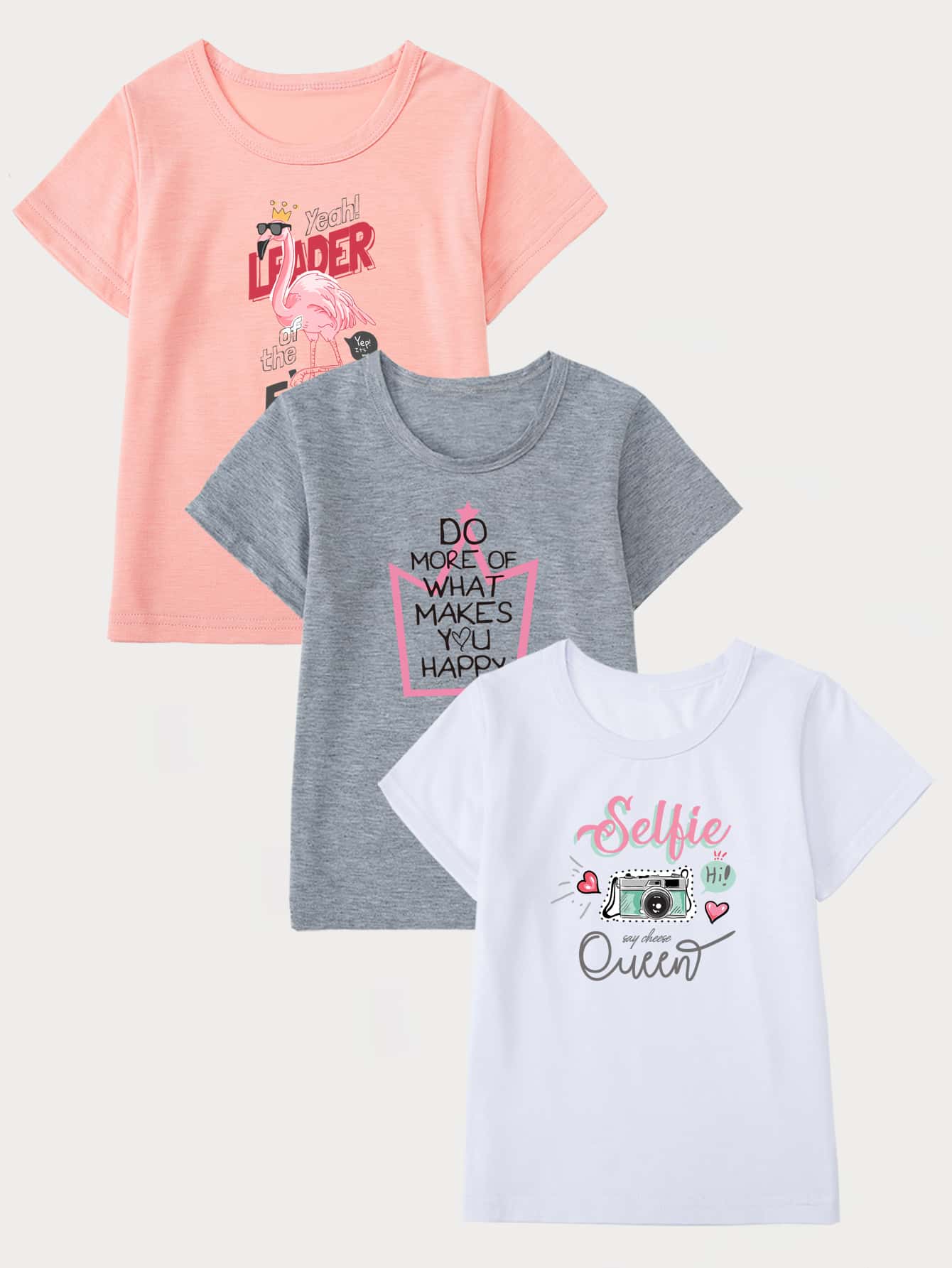بنات 3 طقم تي شيرت بطباعة كرتونية وحرفية