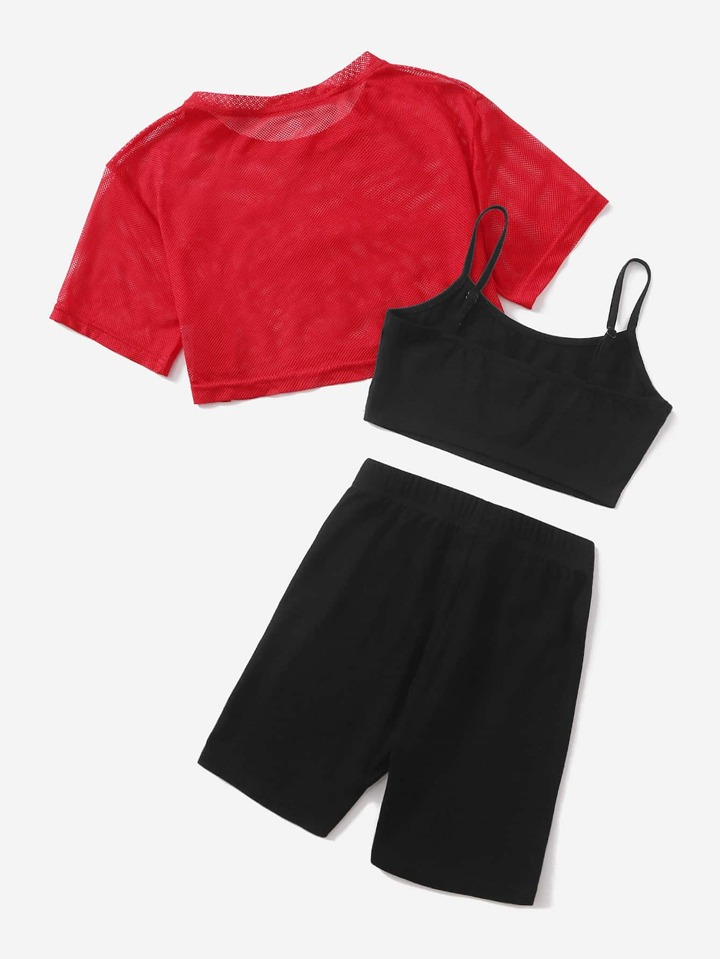 شورت مع قميص قصير مع تي شيرت بجرافيك عبارة 3 قطع للبنات