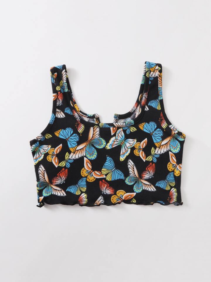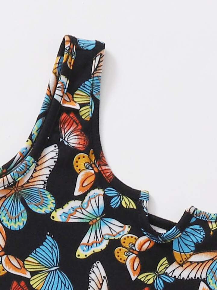 لباس علوي تانك كروب مقلم بنمط الخس بطباعة فراشة شامل للبنات