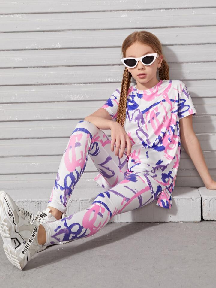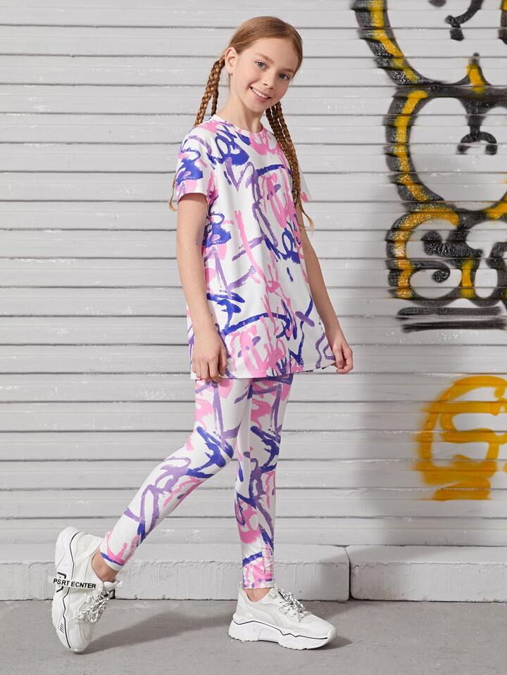 طقم طماق مع لباس علوي بطباعة شامل للبنات