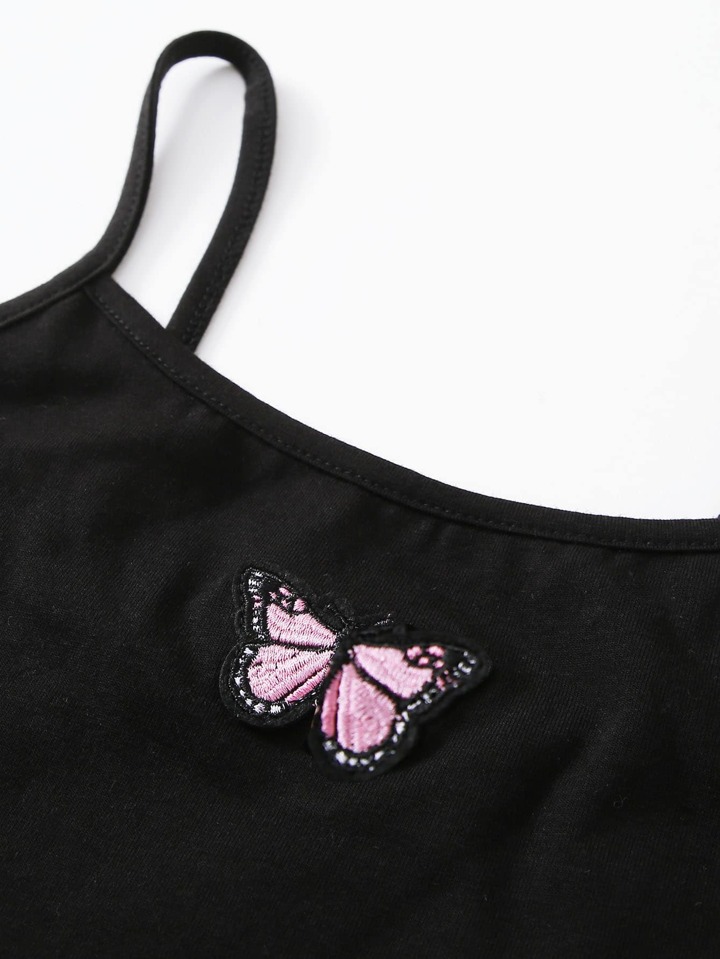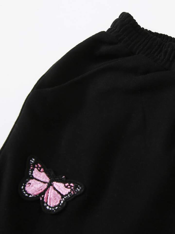 طقم بنطلون رياضي مع لباس علوي كامي قصير مدرز بفراشة للبنات