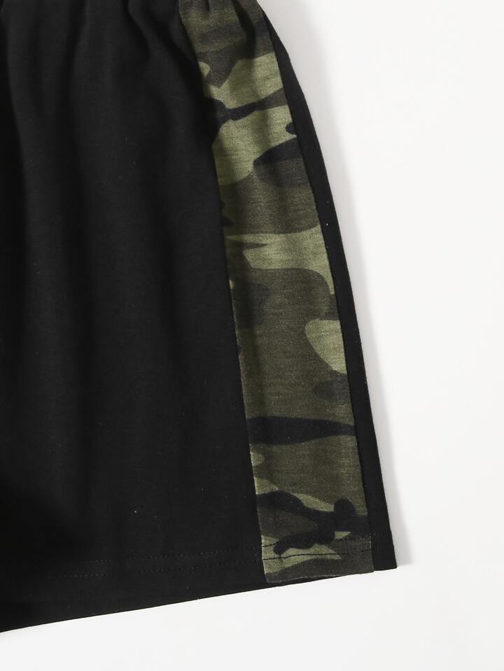 طقم شورت تريك مع مع تي شيرت بطباعة مموه للبنات