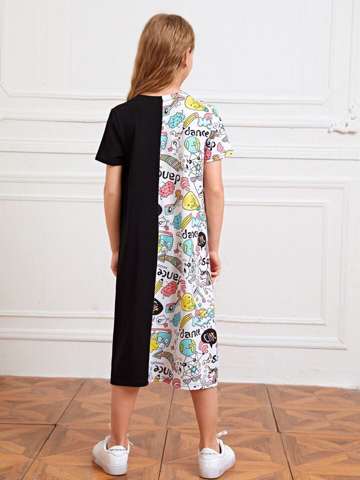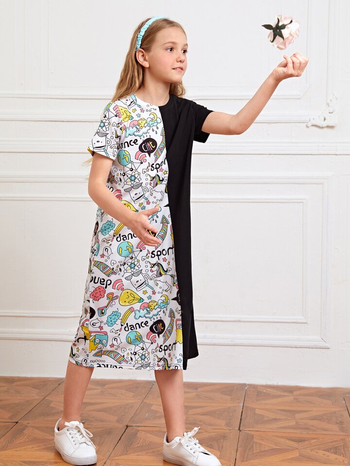 تيشيرت طويل بجرافيك كرتون بنات