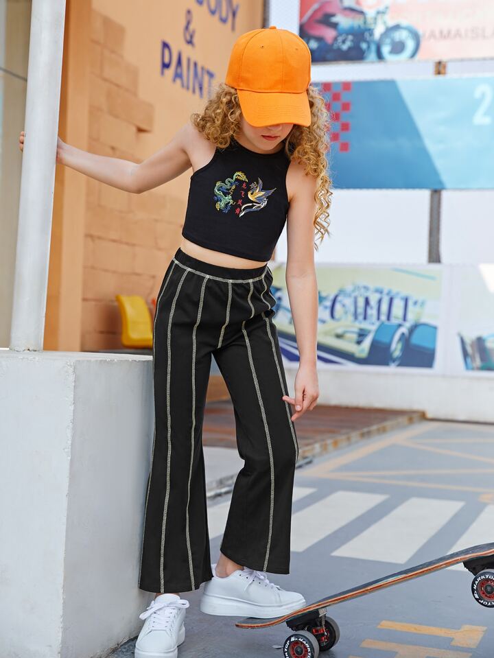 بنطلون بساق واسع من الاسفل مرقع متباين للبنات