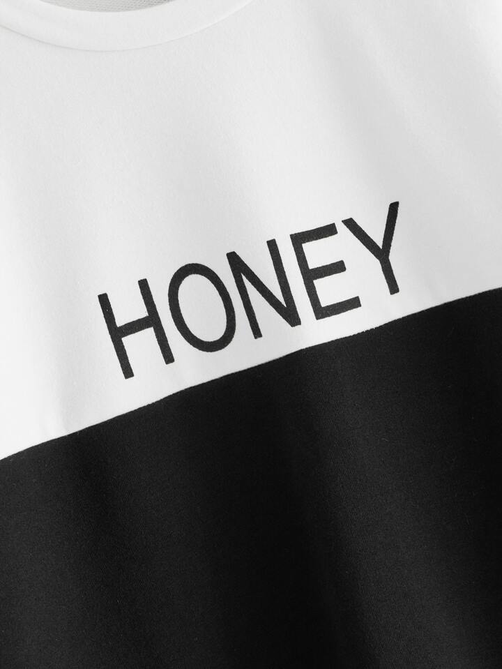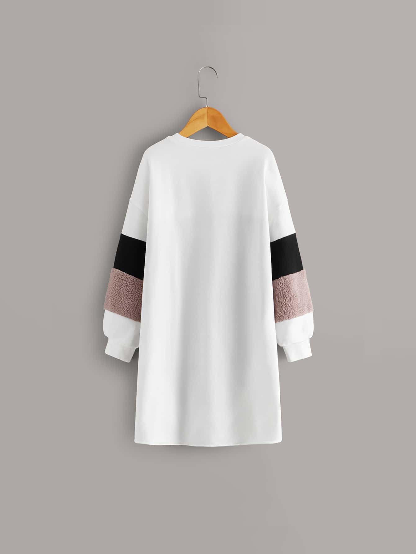 سويت شيرت طويل بجرافيك عبارة وبلوحة تيدي متباين للبنات