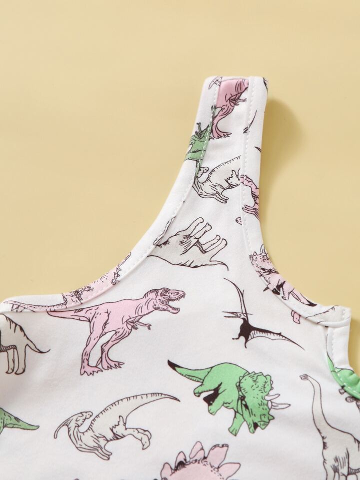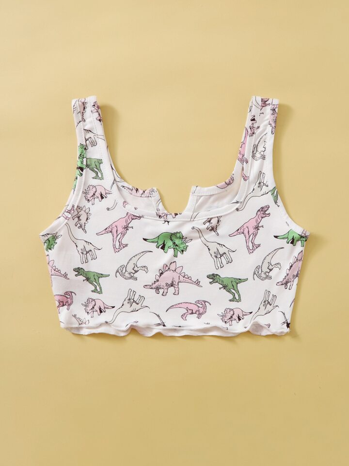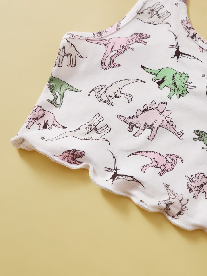 لباس علوي تانك قصير مقلم بنمط الخس وبطباعة ديناصور للبنات