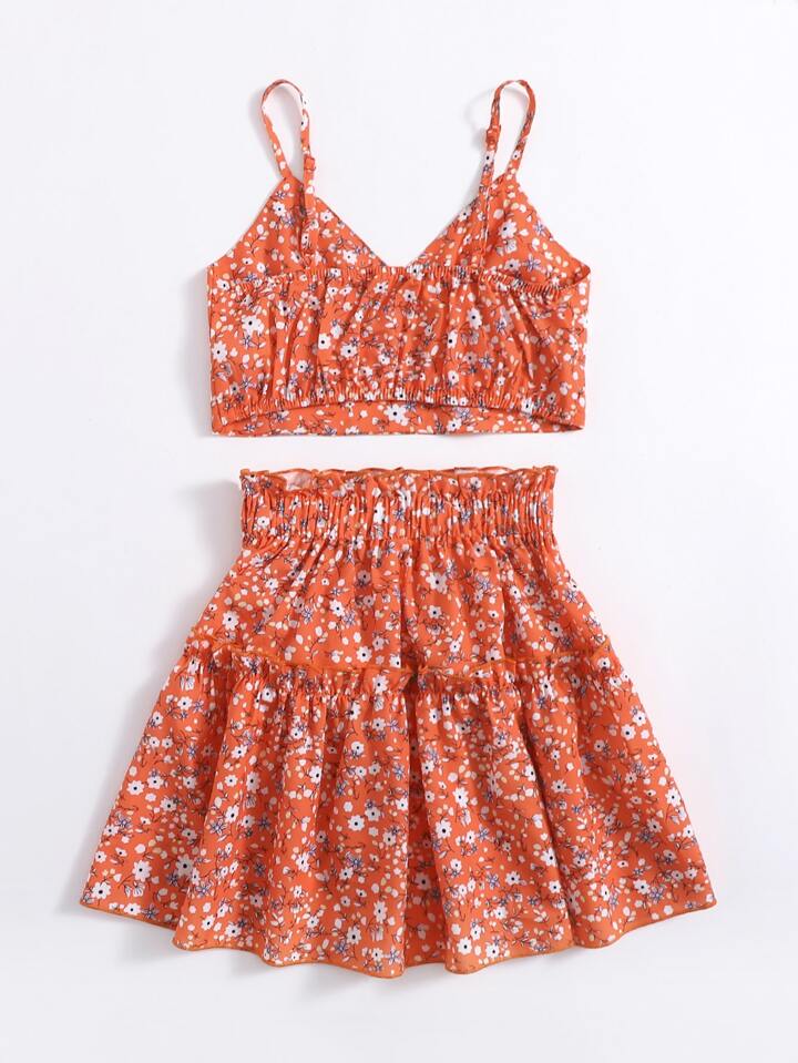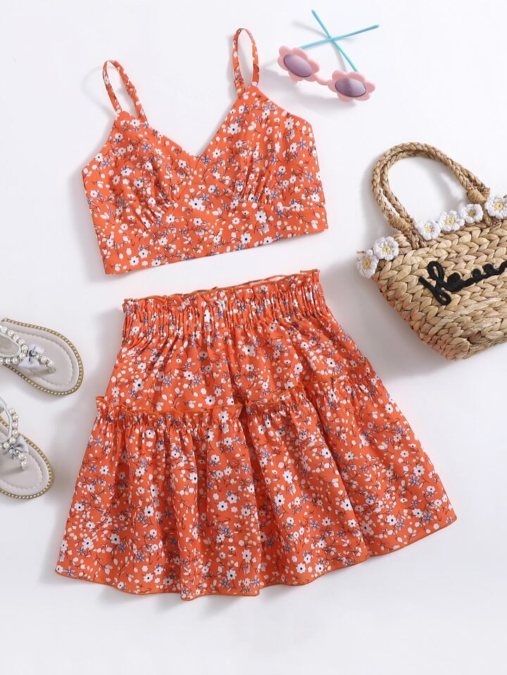 أطقم قطعتين بنات كشكش الثوب ازهار صغيرة بوهو