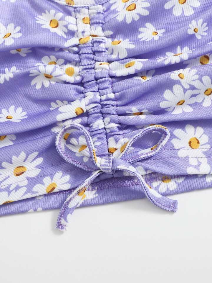 لباس علوي كامي بزهر اقحوان مكشكش وبرباط للبنات