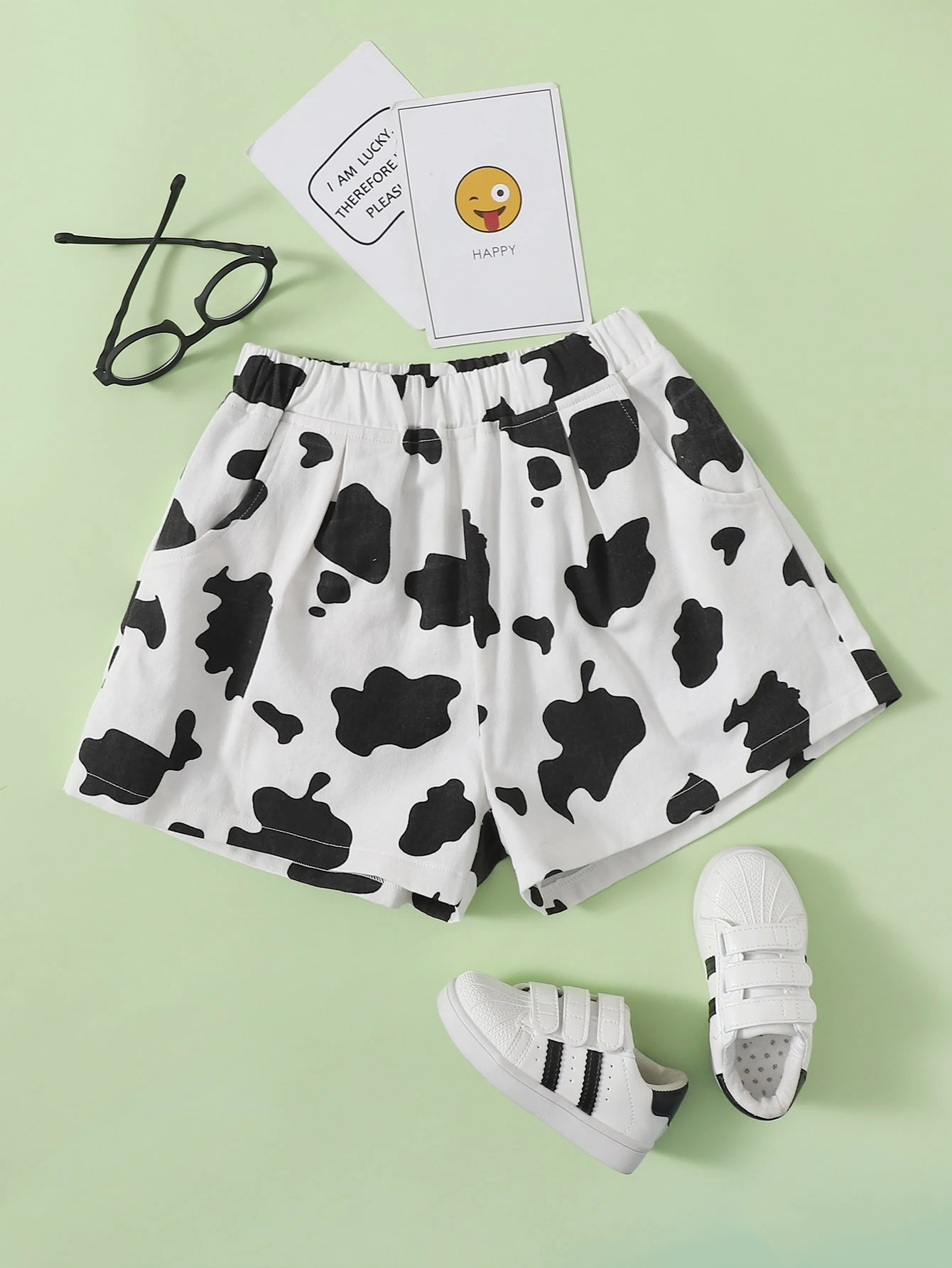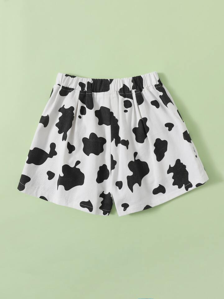 شورت بطباعة بقرة وبخصر مطاطي للبنات